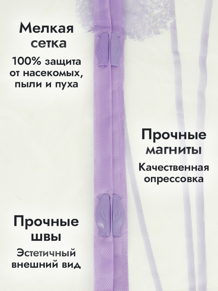 Противомоскитная сетка на дверь на магнитах — идеальное решение для вашего дома, дачи, квартиры. Противомоскитная сетка на магнитах надежно защитит ваш дом от надоедливых насекомых, мух, мошкары, пчел, пуха, пыли. Сетка выполнена из качественного 100% полиэстера, плотность материала 58 гр/кв.м. При этом противомоскитная магнитная шторка прекрасно пропускает воздух, не препятствует проходу людей и домашних животных. Противомоскитная сетка на магнитах легко и быстро устанавливается на балконную дверь, балкон. После прохода человека через дверной проем сетка полностью плотно смыкается, благодаря магнитам, расположенным вдоль всего полотна.