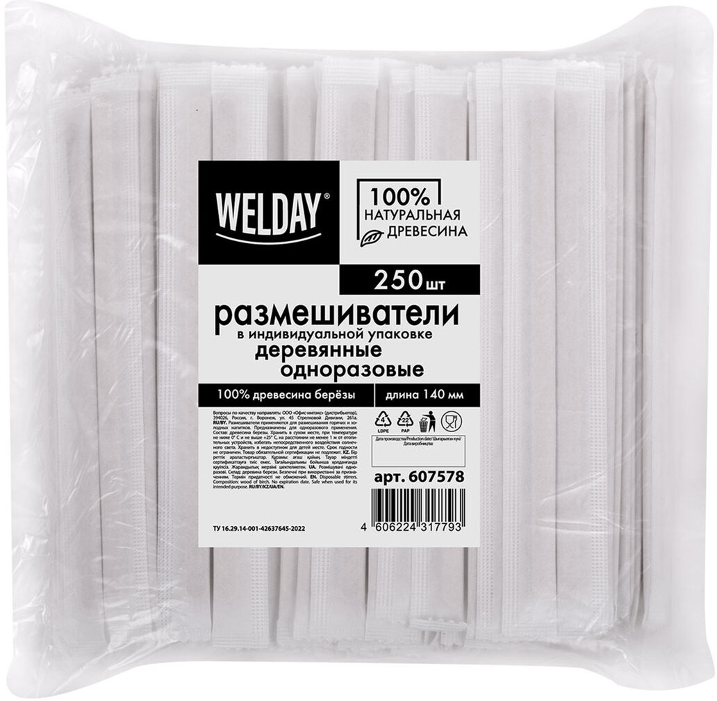 💳 Оплатить за товар можно при получении 🇰🇿 Есть бесплатная доставка по Казахстану от 1 дня 🎁 Копите бонусы с каждой покупки Одноразовые размешиватели в индивидуальной бумажной упаковке используются в офисе, на предприятиях общественного питания, в дороге и быту. Размешиватели изготовлены из древесины березы. Безопасны при использовании, так как не выделяют вредных веществ при взаимодействии с горячей жидкостью. Подойдут как для холодных, так и для горячих блюд (до +95°). Предназначены для одноразового применения, легко утилизируются. Длина — 140 мм. В комплекте 250 штук в индивидуальной бумажной упаковке. |
