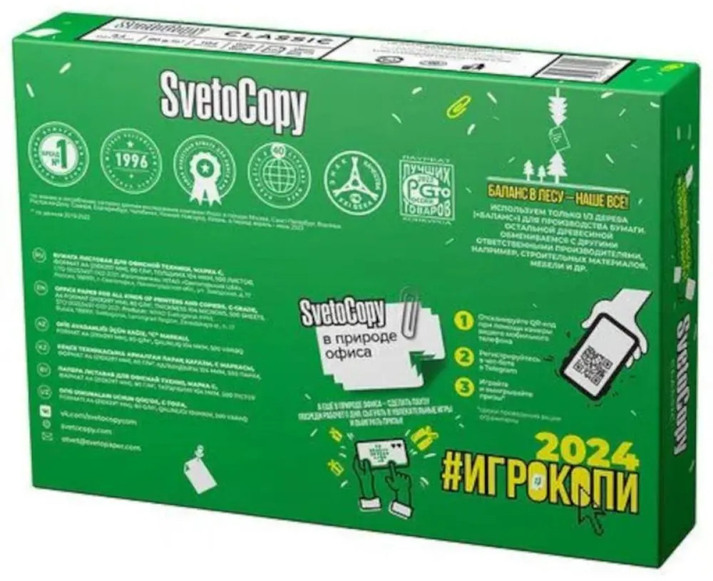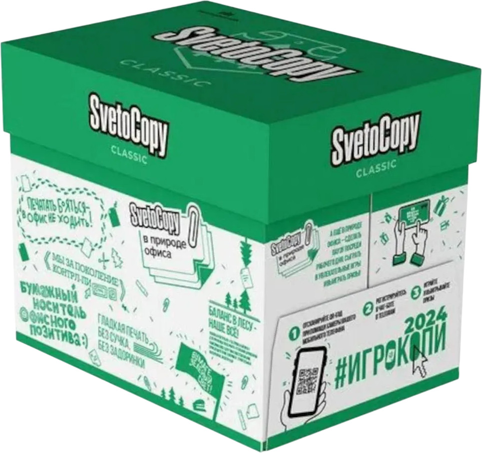 SvetoCopy Комплект бумаги для печати «Classic»В данный момент этот товар отсутствует в продаже. Возможно, у нас найдется аналогичный или похожий товар здесь. Белая офисная бумага С Svetocopy A4 — это высококачественная бумага формата A4, предназначенная для печати документов. Эта бумага найдёт своё применение в офисе и дома, как для работы, так и учебы. Она прекрасно подходит для печати на различных типах устройств, обеспечивая отличную цветопередачу и устойчивость к солнечному свету. Листы С Svetocopy А4 обладают высокой степенью сопротивления заминанию при печати благодаря оптимальной жесткости. Печать на этой бумаге всегда получается чёткой и качественной. Бумага изготовлена лидером в производстве бумаги — Svetocopy, что является дополнительным гарантом качества продукции. А4 формат подходит для разнообразных задач — от печати документов до создания презентаций, докладов и рефератов. Пачка бумаги содержит 500 листов, в комплект входит 5 пачек (2500 листов бумаги), что гарантирует продолжительное использование. |