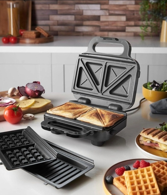 Russell Hobbs Мультипекарь 26810-56В данный момент этот товар отсутствует в продаже. Возможно, у нас найдется аналогичный или похожий товар здесь. Наслаждайтесь любимой едой в любое время дня и ночи с помощью универсального мультимейкера Russell Hobbs Creations 3-в-1 26810-56. В новой модели отличительной особенностью являются более глубокие формы пластин для приготовления сэндвичей! А также мы усовершенствовали антипригарное покрытие пластин — что позволит Вам пользоваться прибором с комфортом еще дольше. Этот универсальный прибор легко трансформируется в 3 прибора будучи превосходным решением для быстрого приготовления вкусного и горячего завтрака или ланча. Вы можете с легкостью готовить хрустящие панини, вкуснейшие бутерброды или выпекать ароматные бельгийские вафли. Мощность прибора 750 Вт. благодаря элегантному дизайну современной матовой черно-глянцевой отделке и вставкам из нержавеющей стали он будет отлично смотреться на любой столешнице. Три взаимозаменяемые сменные панели с усовершенствованным антипригарным покрытием которое легко очищается делают уход за прибором максимально простым. А термоизолированные ручки позволяют безопасно открывать прибор во время приготовления чтобы контролировать готовность. |