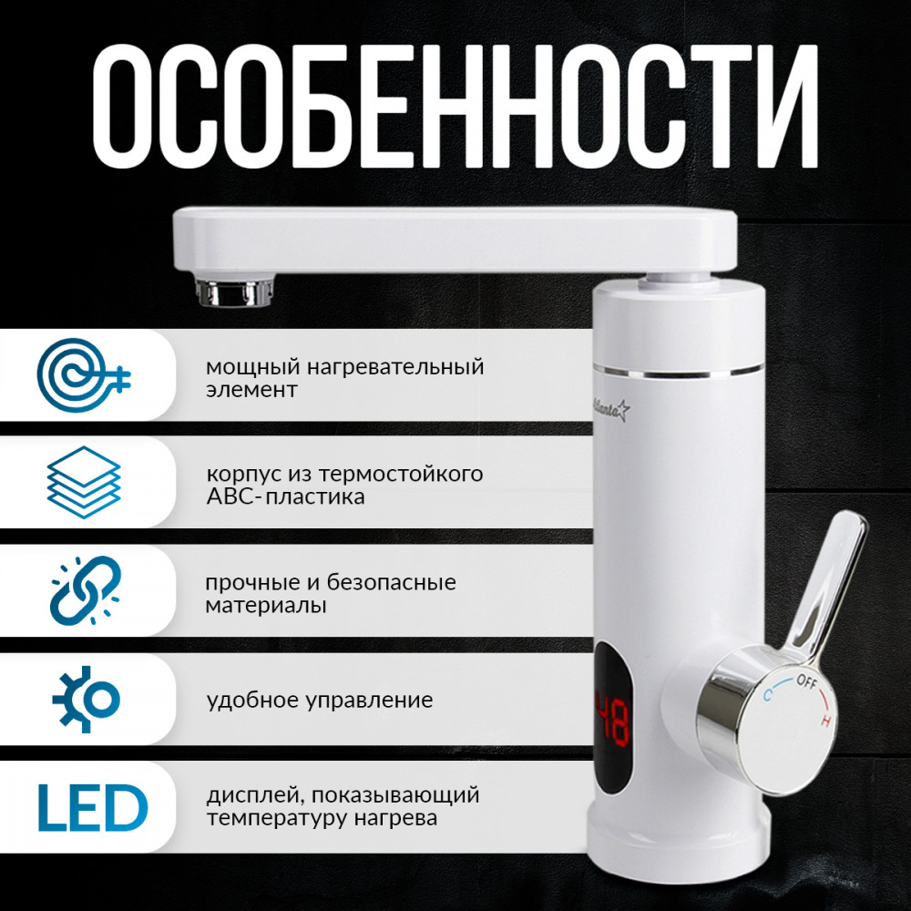 💳 Оплатить за товар можно при получении 🇰🇿 Есть бесплатная доставка по Казахстану от 1 дня 🎁 Копите бонусы с каждой покупки Высококачественный термостойкий пластик, картридж крана с увеличенным ресурсом гарантируют низкую стоимость использования в течение многих лет. Температуру воды больше не нужно проверять рукой, подвергая себя риску ожога слишком горячей водой. Прибор оснащен дисплеем температуры воды и Вы всегда видите текущую температуру потока. Нагреватель воды совмещен со стандартным краном. Вам не понадобится покупать и устанавливать кран отдельно. Вы сэкономите Ваше время и деньги. А главное, установка не будет сложнее установки обычного крана. |
