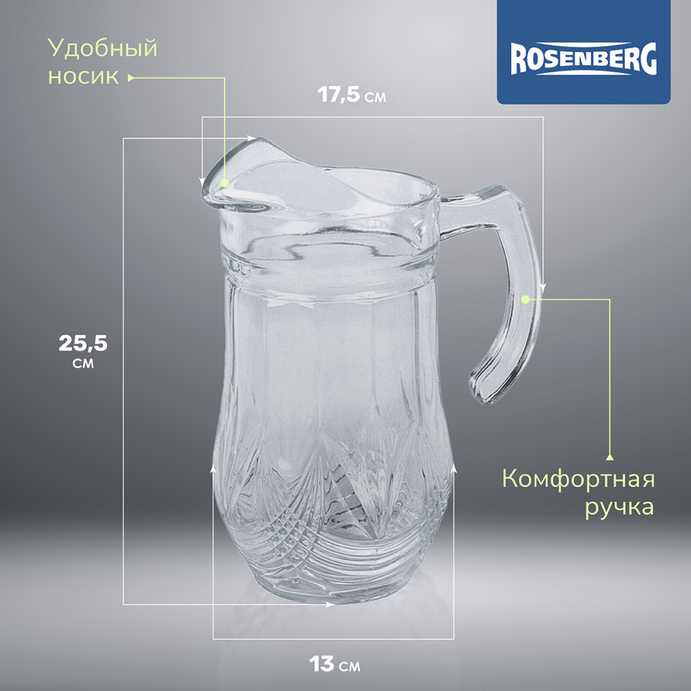 Rosenberg ГрафинВ данный момент этот товар отсутствует в продаже. Возможно, у нас найдется аналогичный или похожий товар здесь. Графин, выполнен из высококачественного стекла. Удобная форма носика. Подходит для: соков,морсов,компотов и любых интересных для Вас напитков. Графин так же имеет удобную ручку,которая упрощает его использование. За счет гладкой поверхности, изделие легко мыть. Подходит для мытья в посудомоечной машине. |