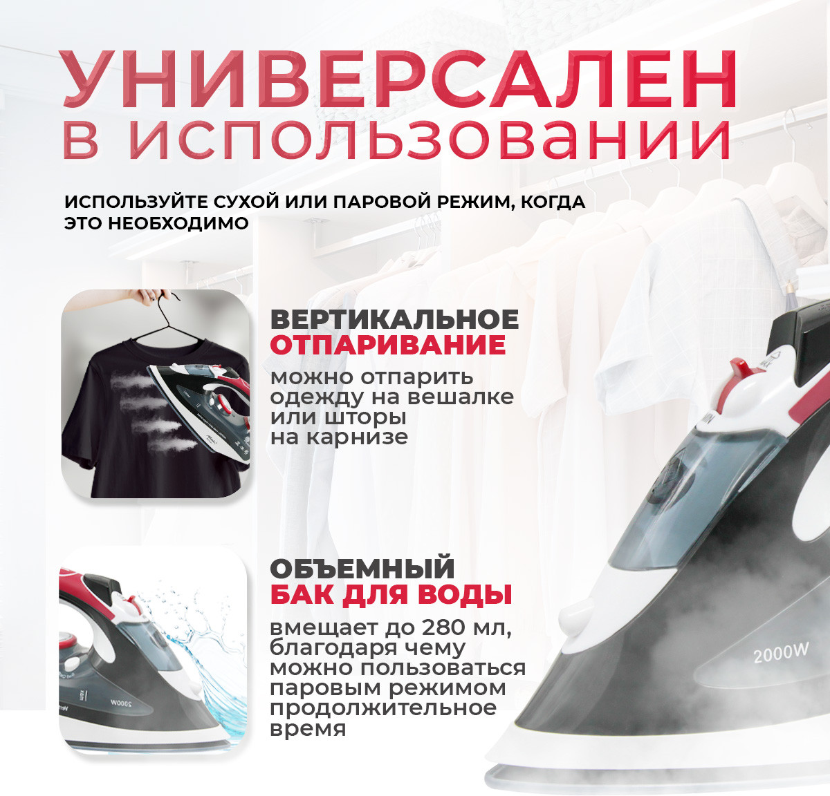 Подошва утюга с керамическим покрытием бережно скользит по ткани, предотвращая повреждения и обеспечивая равномерное распределение тепла. Утюжок также имеет функцию самоочистки, что облегчает его уход и продлевает срок службы. Длина шнура составляет 167 см, что обеспечивает свободу движения во время глажения, а объем резервуара для воды — 280 мл, позволяя проводить процесс глажения без частых перерывов на заливку воды. Преимущества использования утюга с отпаривателем Atlanta ATH-5493 очевидны: благодаря функции увлажнения ткани, ваша одежда будет выглядеть свежей и аккуратной, как будто только что из химчистки. Вертикальное отпаривание позволит вам быстро освежить одежду прямо на вешалке, избавив вас от необходимости доставать гладильную доску. Кроме того, функция самоочистки утюга избавит от проблем с накипью и продлит срок службы устройства. Выбирая паровой утюг для одежды Atlanta ATH-5493, вы делаете ставку на качество, комфорт и стиль, которые превратят вашу рутину глажения в приятное и расслабляющее занятие. Посмотрите другие модели бренда Atlanta, купить наш утюг можно по выгодной цене и со скидкой. |