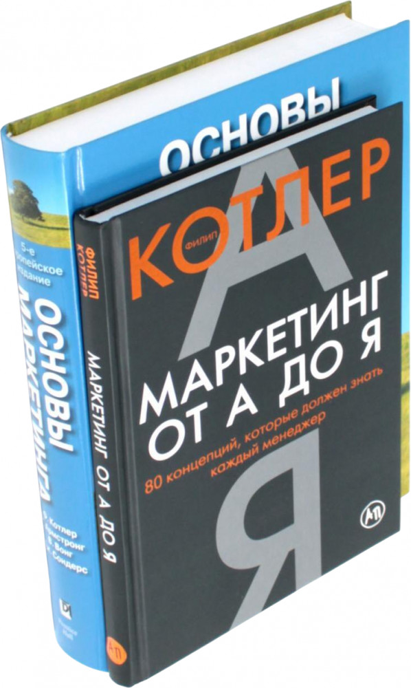 При работе над книгами я руководствовался несколькими принципами. Их должно быть интересно читать. В них должны быть освещены все главные моменты, которые необходимо знать и деятелю рынка, и рядовому гражданину. Повествование должно развиваться логически от главы к главе. Изложение должно основываться на данных научных исследований, а не на слухах и домыслах и быть ориентированным на проблемы управления. Моя цель — подготовить читателя к принятию более квалифицированных решений в сфере маркетинга. Филип Котлер. В комплект вошли книги Филипа Котлера «Маркетинг от А до Я» и «Основы маркетинга. 5-е европейское издание». |