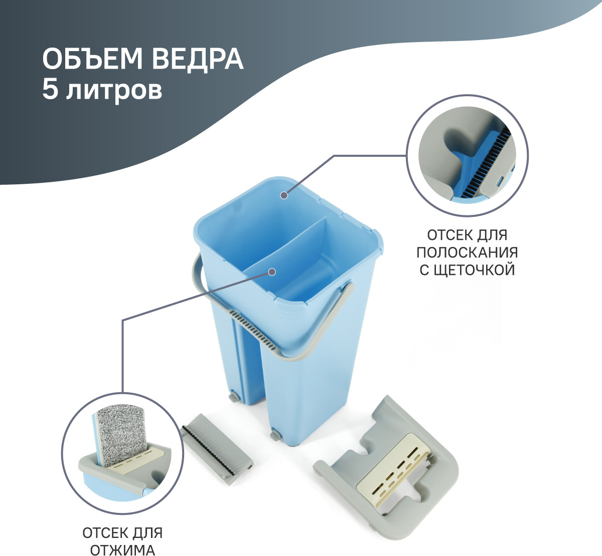 Швабра с тряпкой из микрофибры на липучке легко собирается и без труда убирает загрязнения, как губка впитывает воду, даже в труднодоступных местах. В сложенном состоянии занимает минимум места. Швабра с отжимом выполнена из качественного пластика, пластика, нержавеющей стали, насадки изготовлены из микрофибры. Одно из главных преимуществ данного мойщика — это удобство. Вам не придется теперь нагибаться и пачкать руки, плоская швабра легко соберет всю пыль с пола, а с помощью ведра со встроенным отжимом можно легко промыть швабру и продолжить уборку метелкой для смахивания пыли, чтобы не нагибаться вы всегда можете отрегулировать высоту швабры под себя. Насадка на швабру сделана из микрофибры, она хорошо впитывает грязь и легко моется. Швабра без распылителя, но ее прекрасно можно использовать для мытья любых полов: плитки, ламината, паркета, винила. |