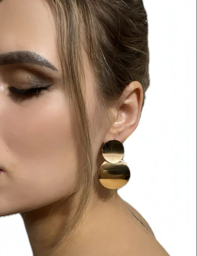 Наша современная коллекция украшений представляет великолепные длинные вечерние серьги круг под золото для подростков и женщин. Женственные объемные пусеты — это не просто изделие, это настоящий акцент элегантности. Стильные гвоздики с двумя кругляшками для девочек дополнят ваш имидж идеально, особенно на особых мероприятиях, будь то свадьба, праздничная вечеринка или ужин.