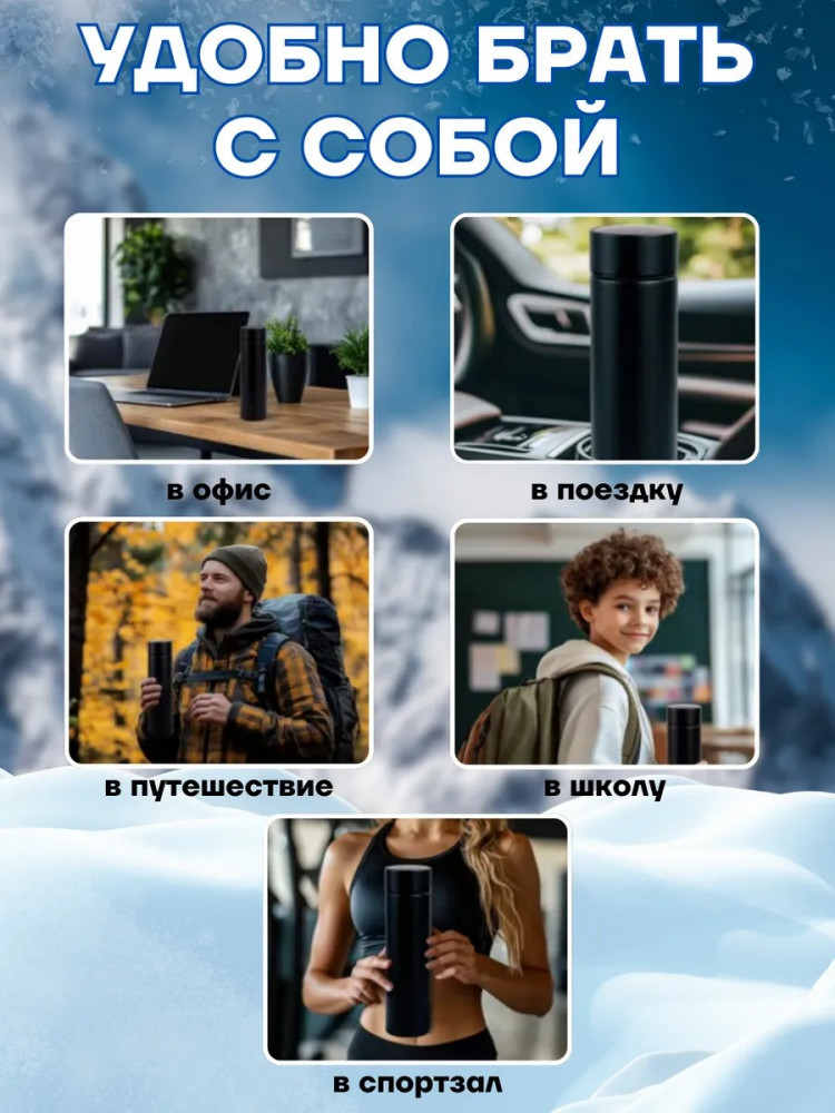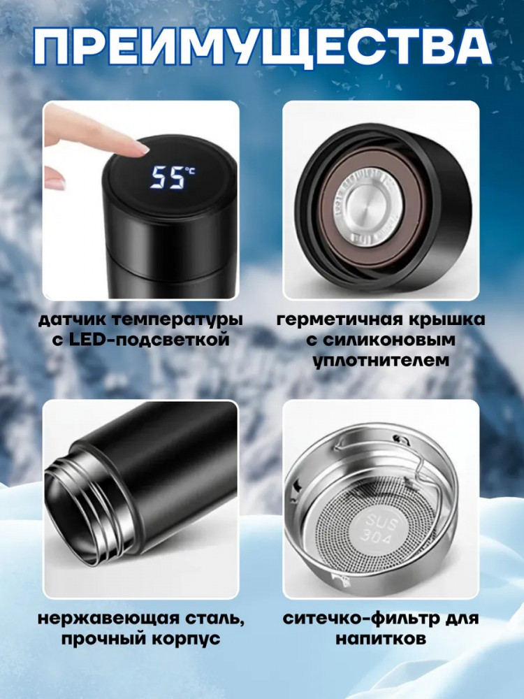 Термос с датчиком температурыудерживает тепло протекает крышка меньше объёма ломается В данный момент этот товар отсутствует в продаже. Возможно, у нас найдется аналогичный или похожий товар здесь. Устали от поисков идеального сосуда для горячих и холодных напитков? Незаменимый помощник в современном мире — умный термос на 0,5 литра с ситечком! Этот инновационный продукт создан специально для активных людей. Он стал первым в своем роде туристическим инвентарем для сохранения тепла чая и кофе во время зимнего отдыха или прогулок. |