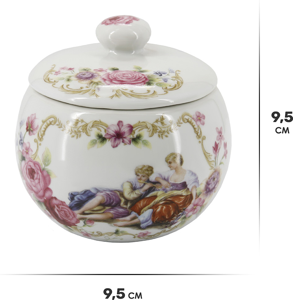 Rosenberg Сахарница «Lovers»В данный момент этот товар отсутствует в продаже. Возможно, у нас найдется аналогичный или похожий товар здесь. Серия: Lovers Сахарница — универсальная емкость, подойдет для любых сыпучих продуктов: сахара, соли, специй. Закрывается удобной крышкой. Не использовать абразивные чистящие средства. Мыть с применением нейтральных моющих средств. Избегать резкого перепада температур. Такая сахарница сможет стать настоящим украшением кухни или приятным подарком для ваших родных и близких. |