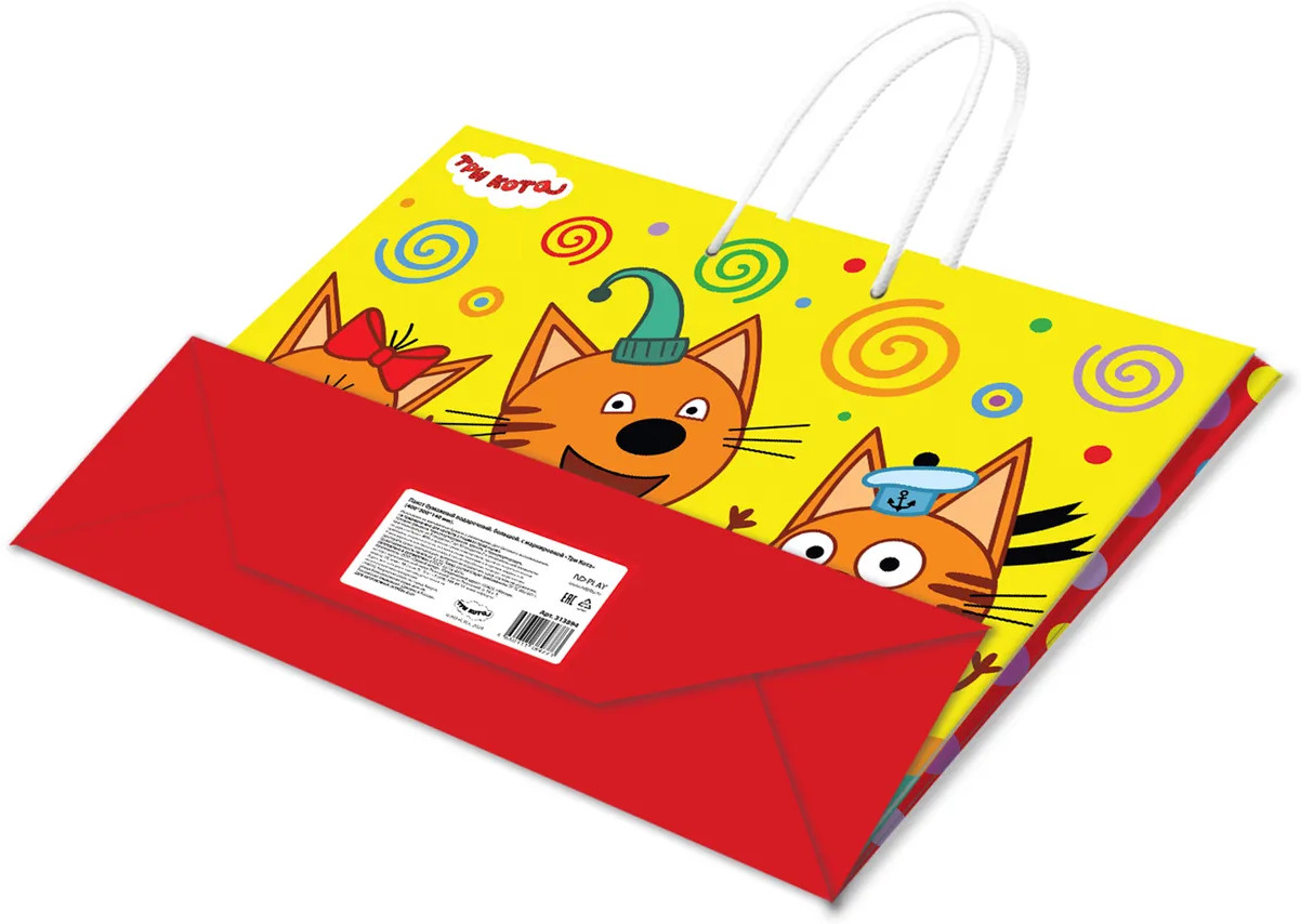 ND Play Пакет подарочный «Три кота»В данный момент этот товар отсутствует в продаже. Возможно, у нас найдется аналогичный или похожий товар здесь. Серия: Три кота Большой подарочный пакет «Три Кота» размером 40 × 14 × 30 см создан для поклонников популярного мультфильма! Подарочный пакет с изображением веселых котов подойдет для упаковки подарков ребёну на День рождения, 8 марта или Новый год. В пакет отлично поместятся книги, конструкторы, настольные игры и другие игрушки весом до 2.5 кг. Пакет гармонично дополнит подарки из серии «Три Кота», поднимет настроение и сделает праздник запоминающимся. Подарочный пакет отличается вместительностью, удобными ручками, ярким дизайном и качественной мелованной бумагой с ламинацией. |
