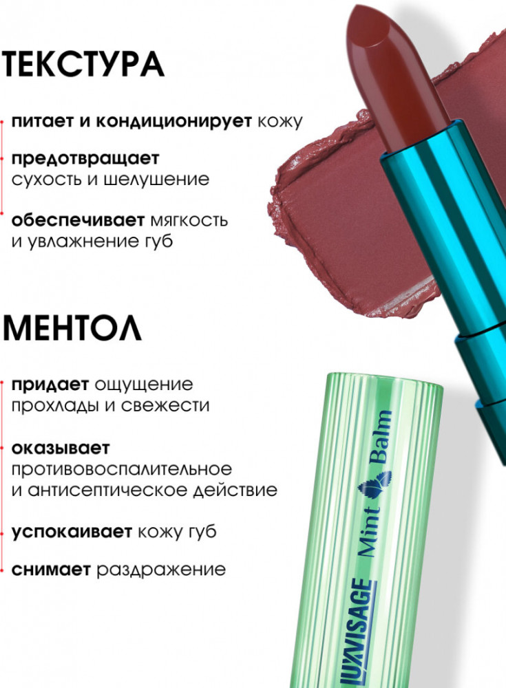 LuxVisage Помада-бальзам для губ «Mint Balm», тон 106 Red Honey