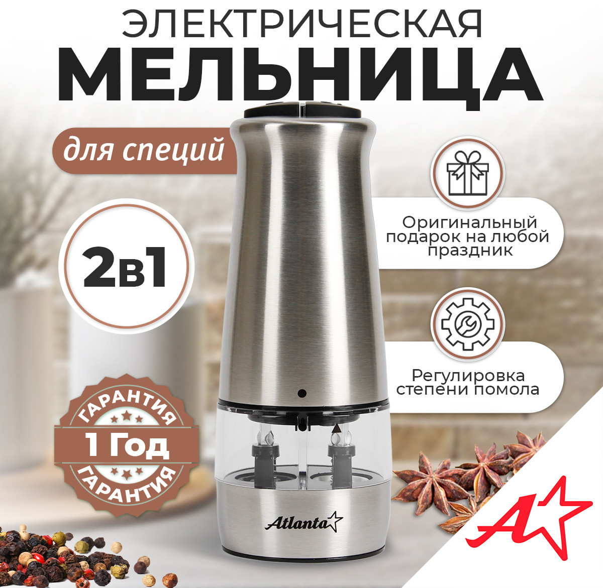 Atlanta Мельница электрическая для специй ATH-4627-30% +161