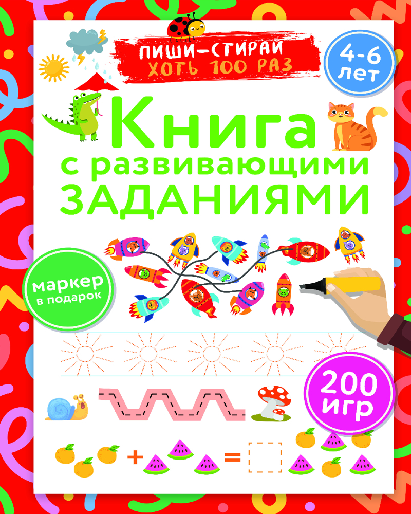 Книга с развивающими заданиями. Пиши-стирайВалентина Геннадьевна Дмитриева В данный момент этот товар отсутствует в продаже. Возможно, у нас найдется аналогичный или похожий товар здесь. Серия: Многоразовая тетрадь с маркером «Книга с развивающими заданиями. Пиши-стирай» — удобная и полезная многоразовая рабочая тетрадь большого формата, в которой можно писать, рисовать и стирать хоть 100 раз! Малыша ждут игры с буквами и словами, игры с цифрами и числами, занимательные задания для развития внимания, логики, памяти, мелкой моторики, пространственного мышления. Мелованный картон и ламинированные страницы делают книгу прочной и износостойкой. Благодаря спирали ребёнку легко и удобно перелистывать плотные страницы. Книгу можно использовать дома, на занятиях в детском саду и даже в дороге. Для дошкольного возраста. |