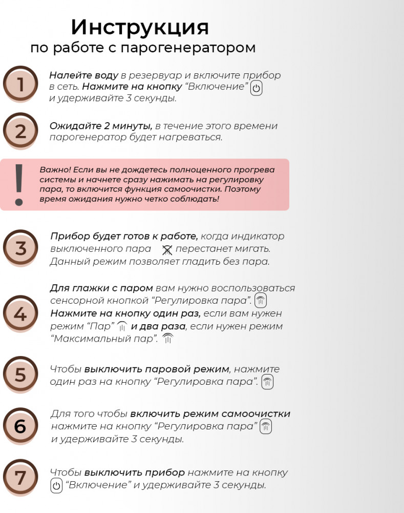 💳 Оплатить за товар можно при получении 🇰🇿 Есть бесплатная доставка по Казахстану от 1 дня 🎁 Копите бонусы с каждой покупки Парогенератор Atlanta — профессиональный подход к глажке белья. Благодаря высокому давлению пара в 5,5 бар, парогенератор для одежды поможет вам в считанные минуты выгладить большое количество одежды, белья. Утюг с парогенератором — это комбинированное устройство, которое объединяет возможности обычного утюга и отпаривателя. Он обеспечивает более эффективное и быстрое глажение даже самых сложных типов тканей. Такой прибор с легкостью заменит утюг и ручной отпариватель. Поможет освежить и устранить складки на одежде, паровой удар убьет болезнетворные бактерии и нейтрализует неприятные запахи.Утюг с отпаривателем 2 в 1 намного эффективнее обычного утюга для одежды. Устройство имеет компактный размер, при этом отличается высокой мощностью 3000 Вт. |