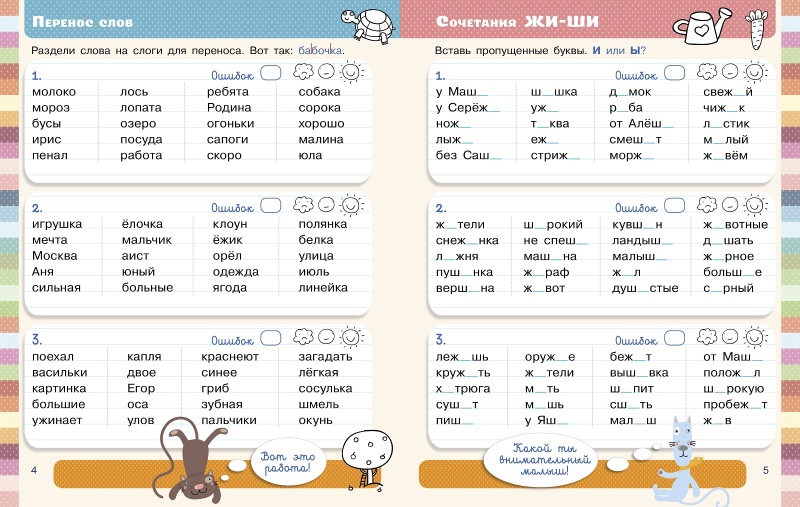 Удобная подача материала позволит вам экономить драгоценное время, как на уроке, так и при проверке задания. Тетрадка станет для вас незаменимым помощником на весь учебный год – в ней дети могут писать и стирать написанное, что даст вам возможность возвращаться к одному и тому же материалу столько раз, сколько нужно: сначала при разборе нового материала, а затем для закрепления – в течение всего учебного года. И вы добьетесь 100% грамотности!