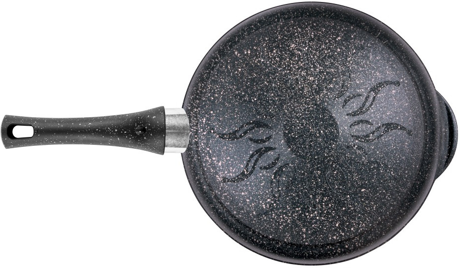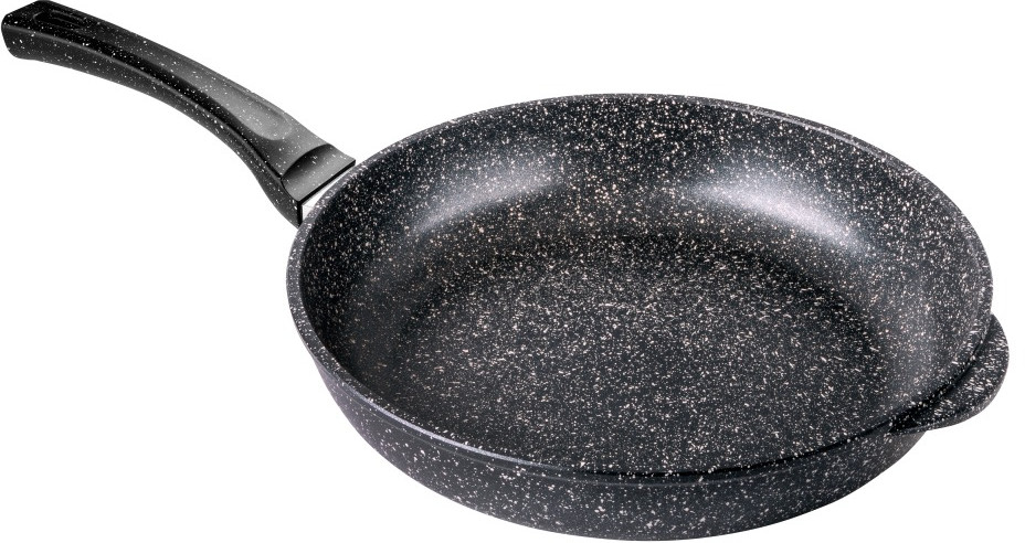 Литая алюминиевая сковорода с антипригарным покрытием — оригинальная посуда, которая подходит для газовых, электрических и стеклокерамических плит. Необходима для приготовления различных продуктов: мяса, овощей, грибов, рыбы и т.д. «Гранит». Коллекция «мраморной посуды» с улучшенным четырёхслойным антипригарным покрытием. Дополнительный слой с мраморным эффектом увеличивает износостойкость и создаёт оттенок серого мрамора. Сковорода литая изготовлена из пищевого алюминия без канцерогенных веществ. Антипригарная сковорода имеет толстые стенки и утолщенное дно, что способствует равномерному распределению тепла и создает благоприятные условия для качественного процесса готовки. Антипригарное покрытие на водной основе не содержит вредных химических соединений.