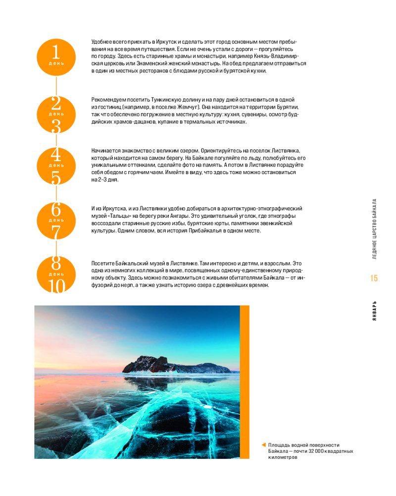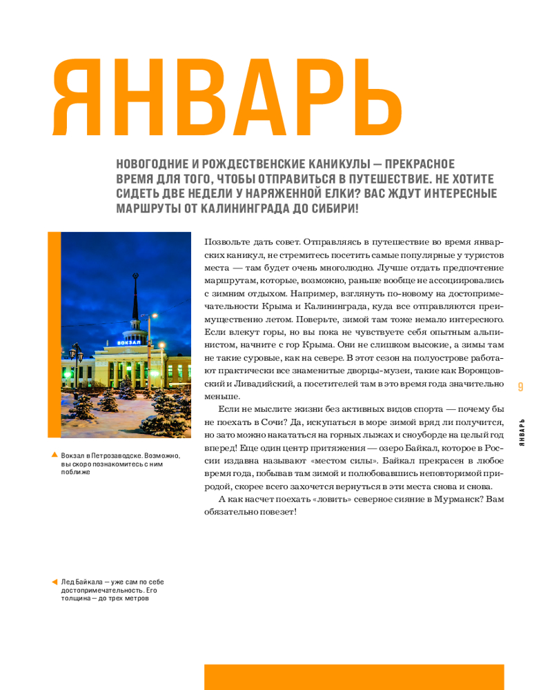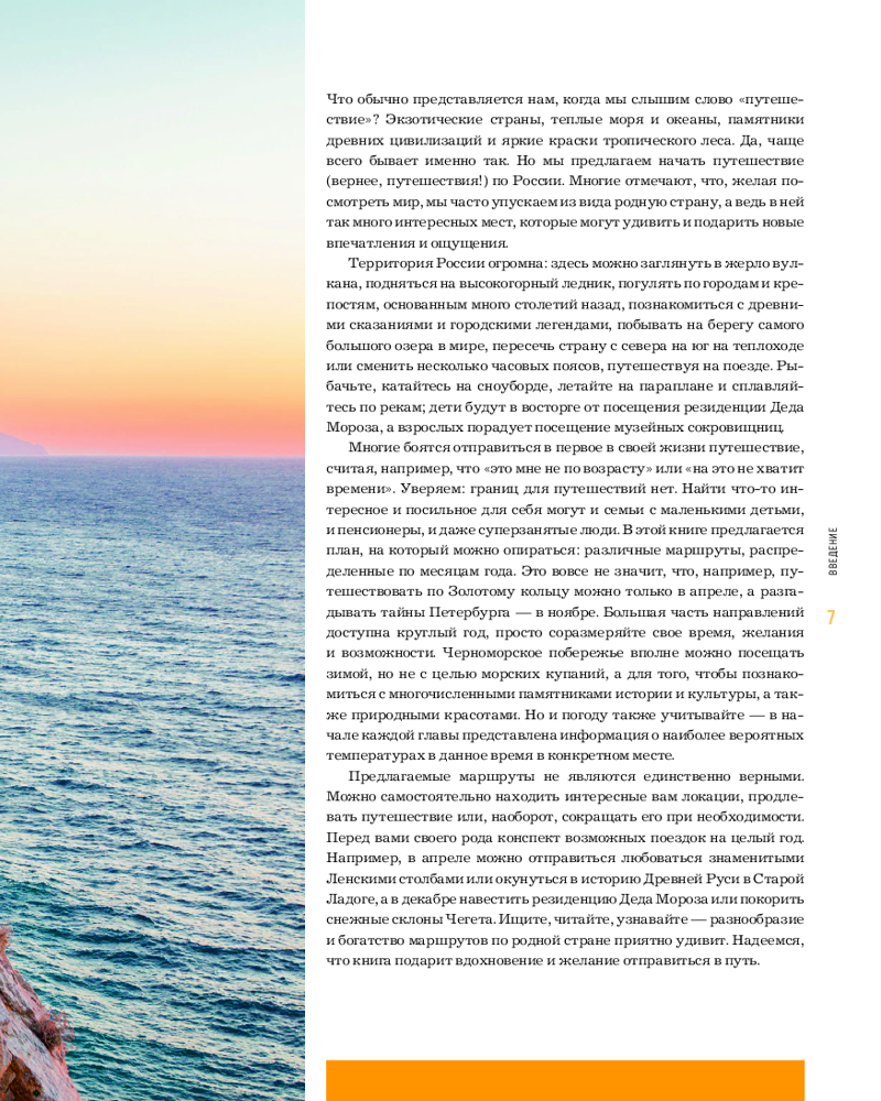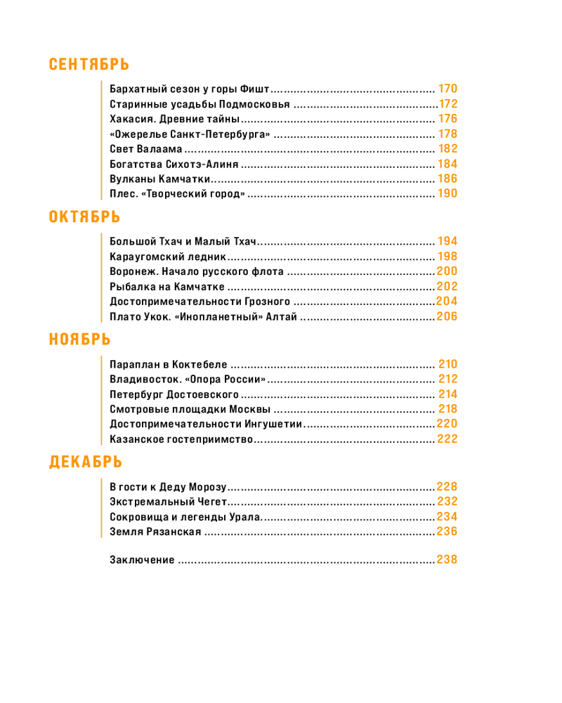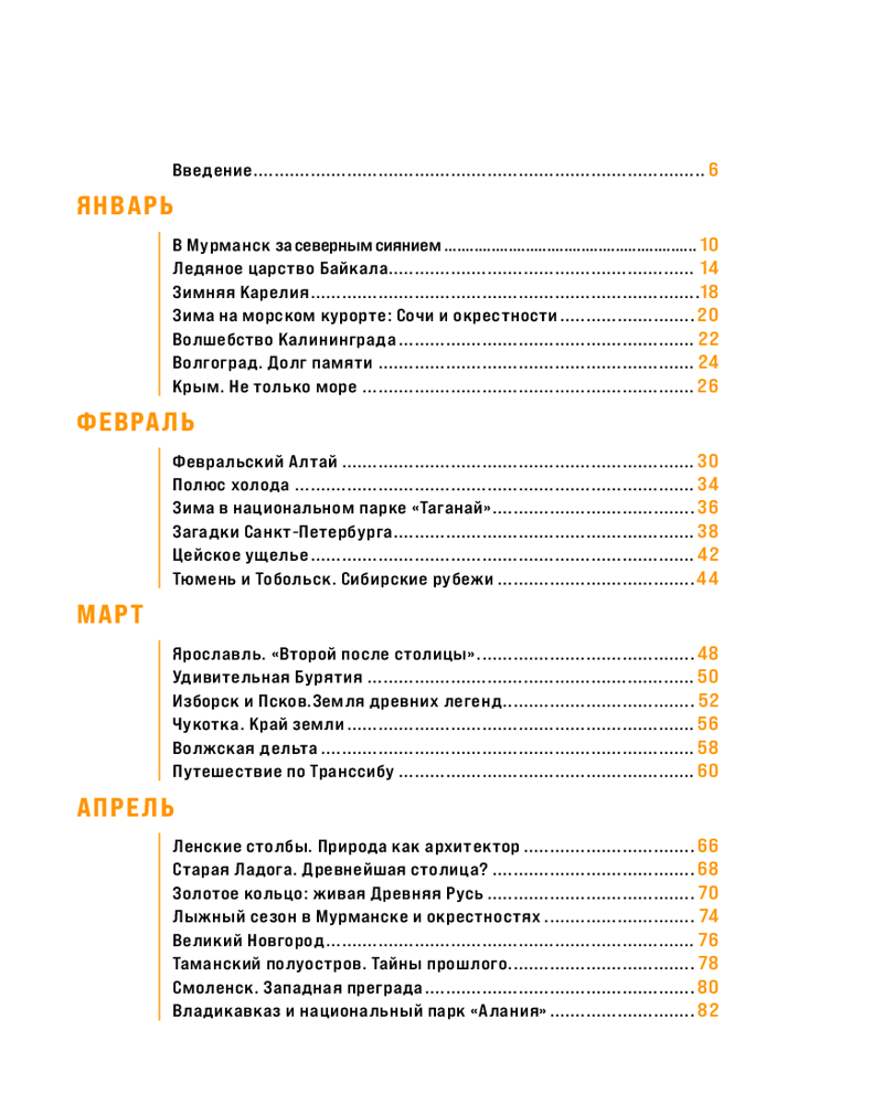 • не знаете, куда отправиться в январе или как провести майские праздники? В книге вы найдете тщательно подобранные направления для каждого месяца. Узнайте, где лучше всего любоваться северным сиянием, как провести незабываемое лето на Байкале, насладиться захватывающими видами горных водопадов и найти исторические сокровища в древних городах Золотого кольца.