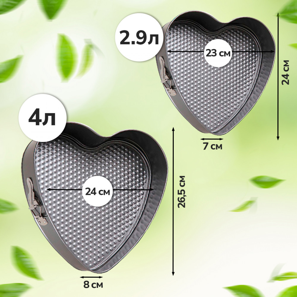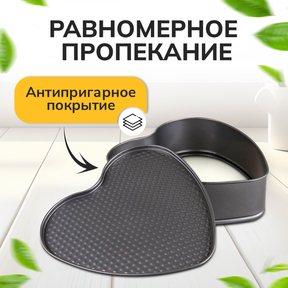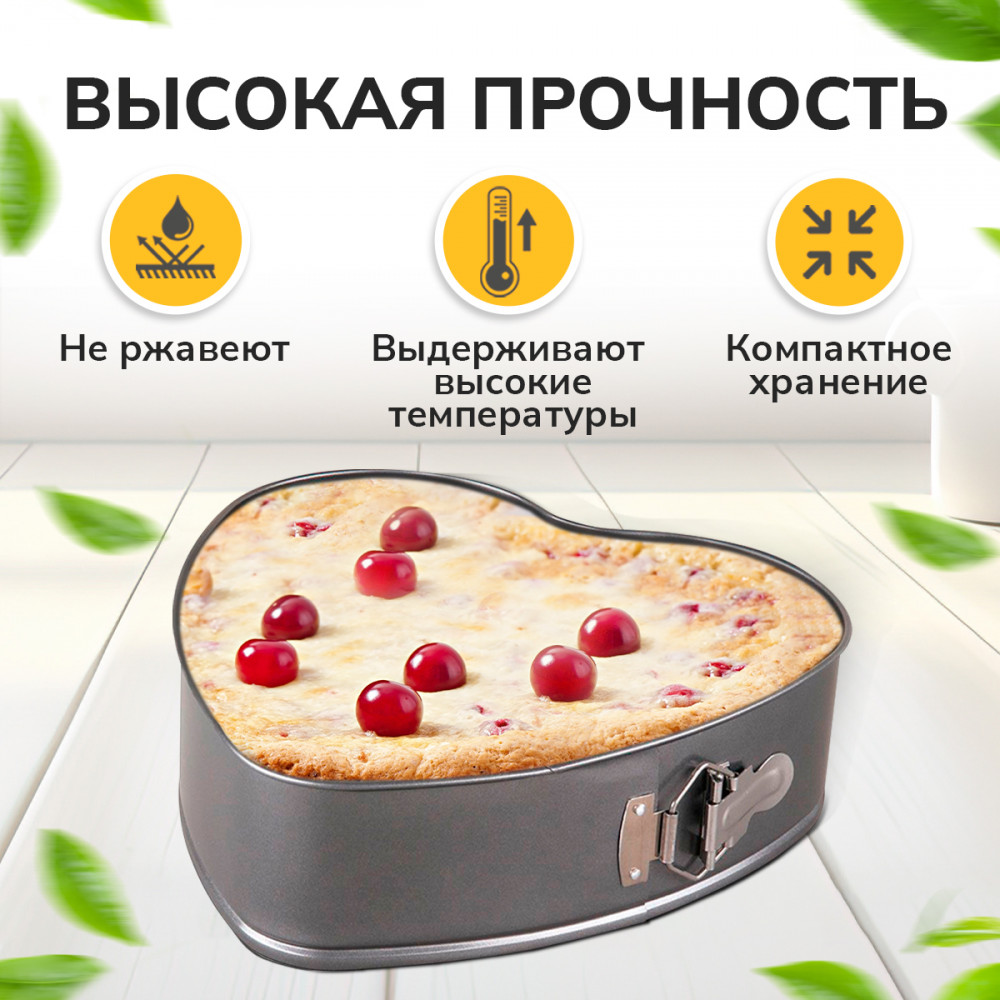 💳 Оплатить за товар можно при получении 🇰🇿 Есть бесплатная доставка по Казахстану от 1 дня 🎁 Копите бонусы с каждой покупки Набор разъемных форм для выпечки в виде сердца. Основной плюс посуды этого типа заключается в том, что эта посуда не перегревается, соответственно не разрушается антипригарный слой. Мраморное покрытие делает возможным приготовление блюд без масла. Оно обладает повышенной стойкостью к царапинам и внешним воздействиям. Такая посуда незаменима для приготовления запеканок, всевозможных блюд из мяса и овощей, а также выпечки из теста и изысканных кондитерских блюд. |