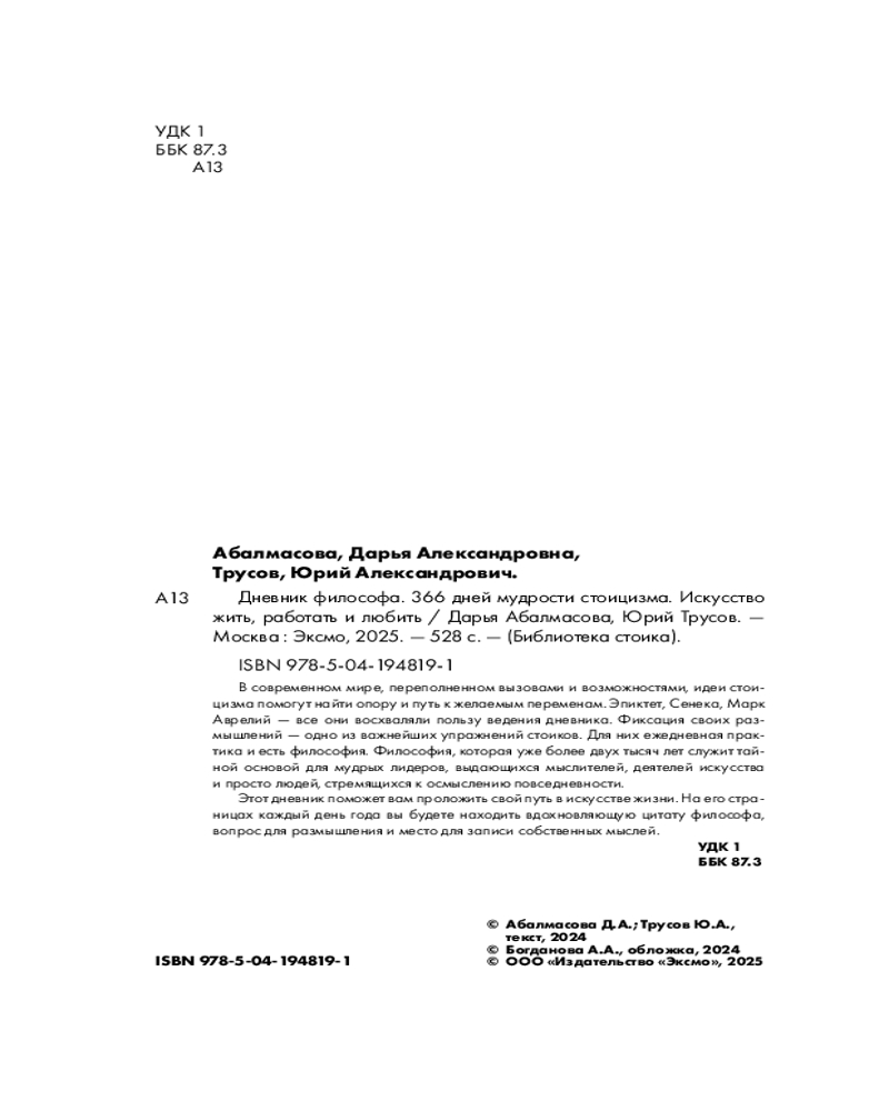 Дневник философа. 366 дней мудрости стоицизма. Искусство жить, работать и любитьДарья Александровна Абалмасова, Юрий Александрович Трусов -20% +167