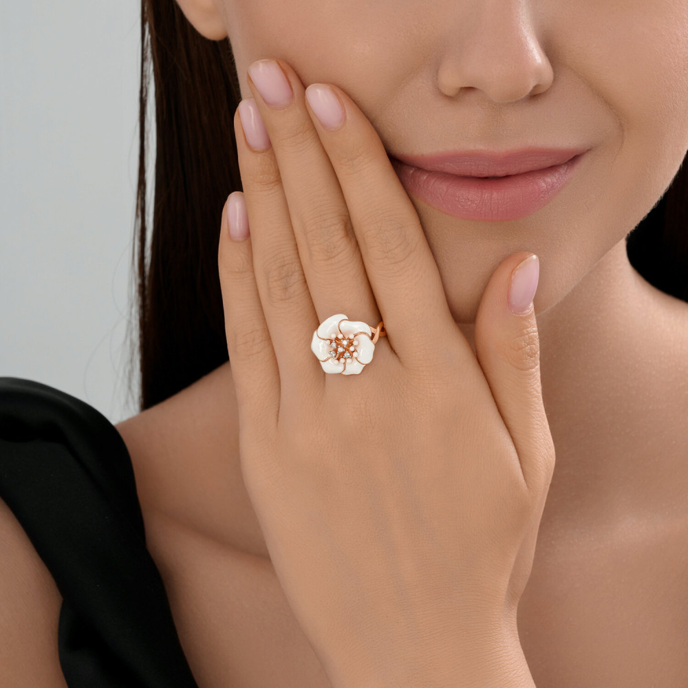 SOKOLOV Кольцо из золочёного серебра с фианитами и эмалью