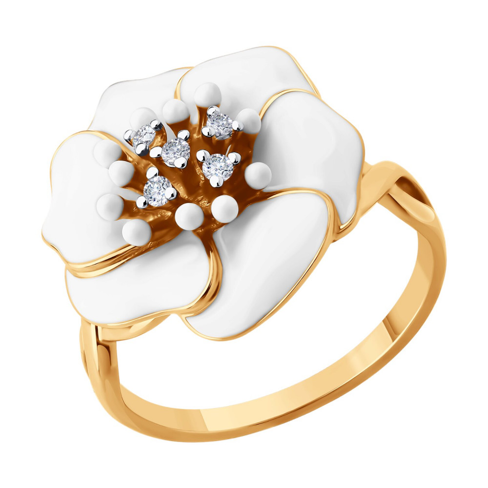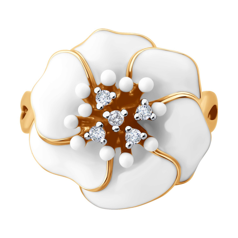 SOKOLOV Кольцо из золочёного серебра с фианитами и эмалью