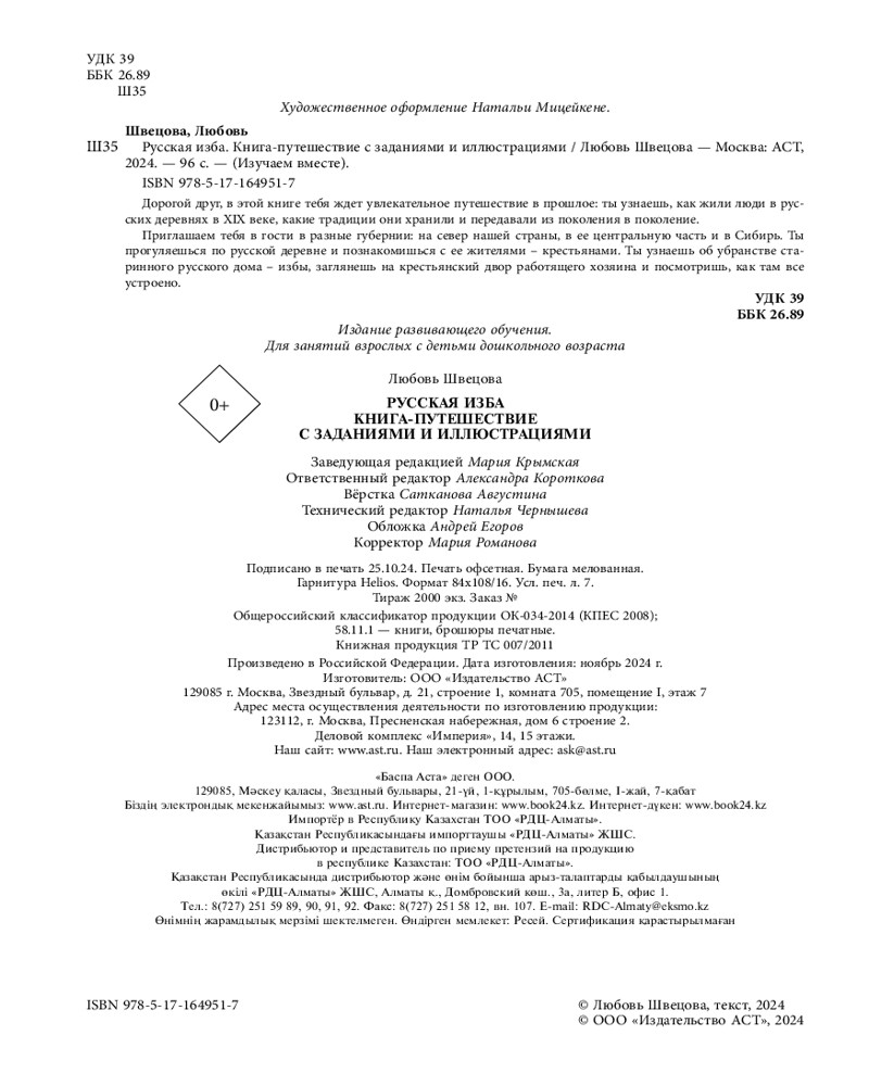 Русская изба. Книга-путешествие с заданиями и иллюстрациями+56