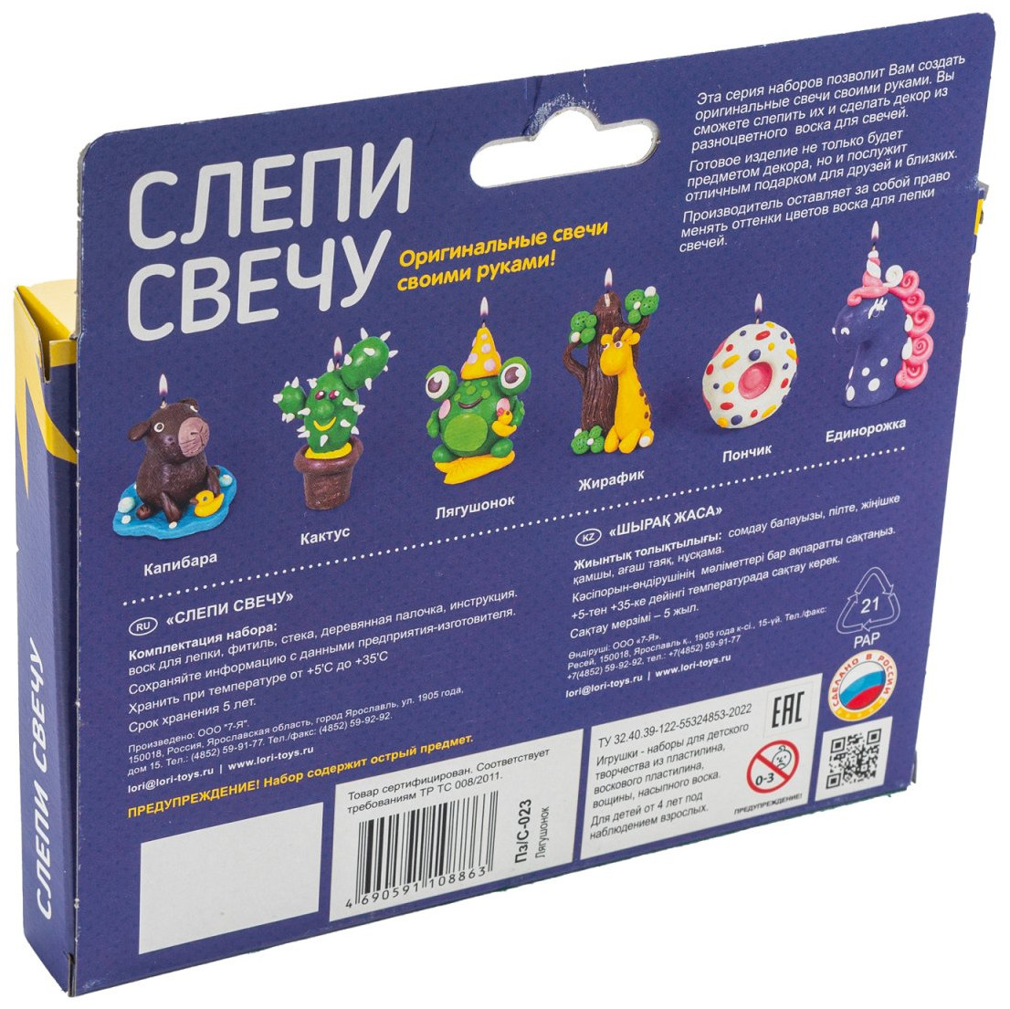 Lori Набор для лепки свечей «Лягушонок»В данный момент этот товар отсутствует в продаже. Возможно, у нас найдется аналогичный или похожий товар здесь. Серия: Слепи свечу Создание свечи своими руками — это простой и захватывающий процесс, который не только развивает мелкую моторику и аккуратность, но и предлагает возможность творческого самовыражения. В результате получается яркая фигурка, которая также может использоваться как настоящая свеча. Это не только отличный способ провести время, но и уникальный подарок для друзей и близких. |