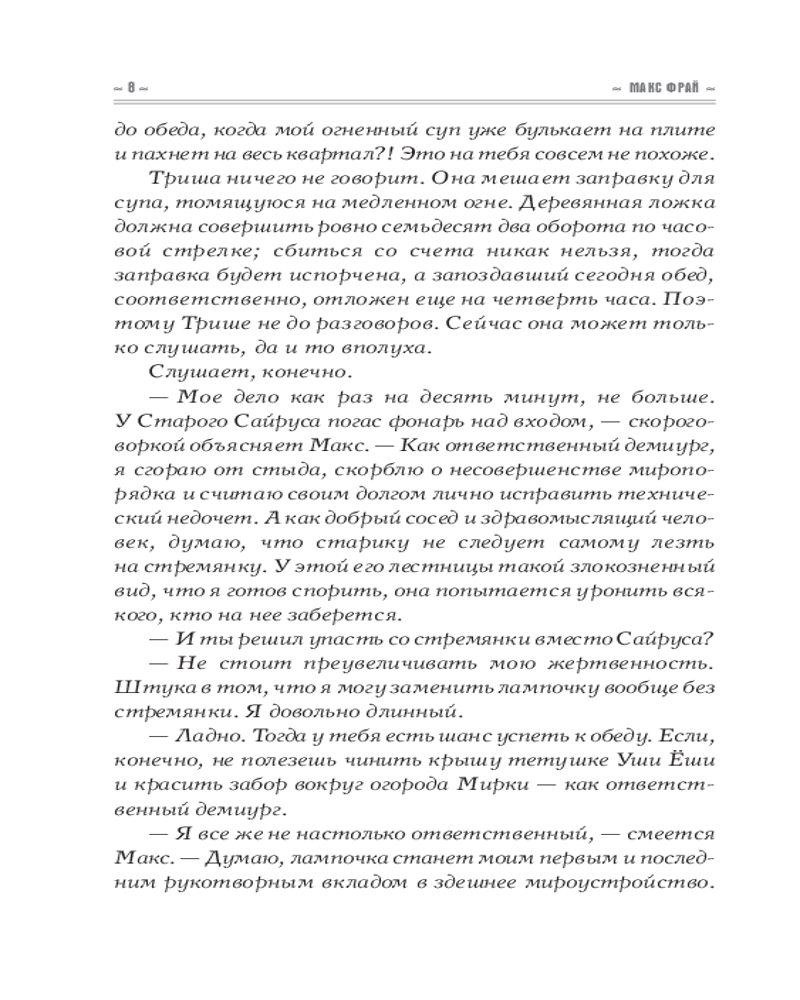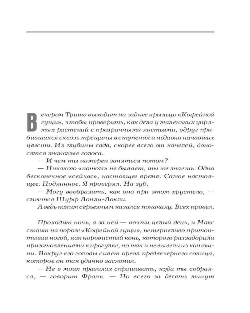 💳 Оплатить за товар можно при получении 🇰🇿 Есть бесплатная доставка по Казахстану от 1 дня 🎁 Копите бонусы с каждой покупки Серия: Хроники Ехо (илл. Ферез) Трактир «Кофейная гуща» стоит на границе между новорожденной реальностью и непознаваемым хаосом еще не осуществленных возможностей. Он стал центральным местом действия цикла «Хроники Ехо», в ходе которого старые друзья и коллеги встречаются, чтобы поговорить о прошлом и помолчать о будущем, которое уже почти наступило. В восьмой книге цикла «Хроники Ехо» сэр Нумминорих Кута расскажет о тубурских Мастерах Снов, изамонских обычаях, Темной Стороне, Вечном Сне и других чудесах Мира. А заодно о том, как он нечаянно изменил Мир — раз и навсегда. |