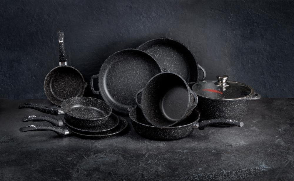 Литая алюминиевая сковорода с антипригарным покрытием — оригинальная посуда, которая подходит для газовых, электрических и стеклокерамических плит. Необходима для приготовления различных продуктов: мяса, овощей, грибов, рыбы и т.д. «Гранит». Коллекция «мраморной посуды» с улучшенным четырёхслойным антипригарным покрытием. Дополнительный слой с мраморным эффектом увеличивает износостойкость и создаёт оттенок серого мрамора. Сковорода литая изготовлена из пищевого алюминия без канцерогенных веществ. Антипригарная сковорода имеет толстые стенки и утолщенное дно, что способствует равномерному распределению тепла и создает благоприятные условия для качественного процесса готовки. Антипригарное покрытие на водной основе не содержит вредных химических соединений. Посуда металлическая имеет гладкую поверхность, что облегчает мытьё. Сковорода со съёмной ручкой может быть применена в духовом шкафу. Ручка для сковороды из бакелита не нагревается и не выскальзывает из рук.