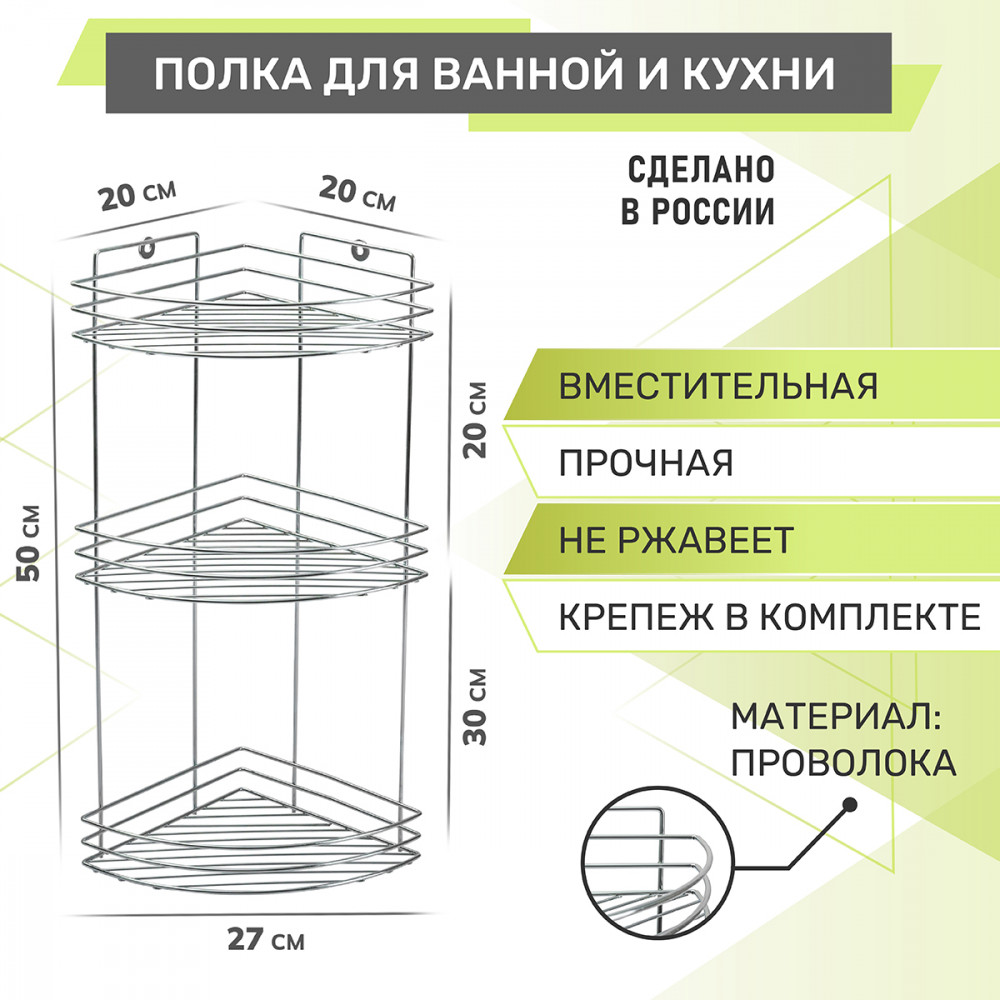 Rosenberg Полка для ванной комнаты трехъярусная угловая+225