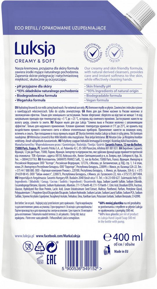 Luksja Крем-мыло жидкое увлажняющее «Лен и рисовое молочко»