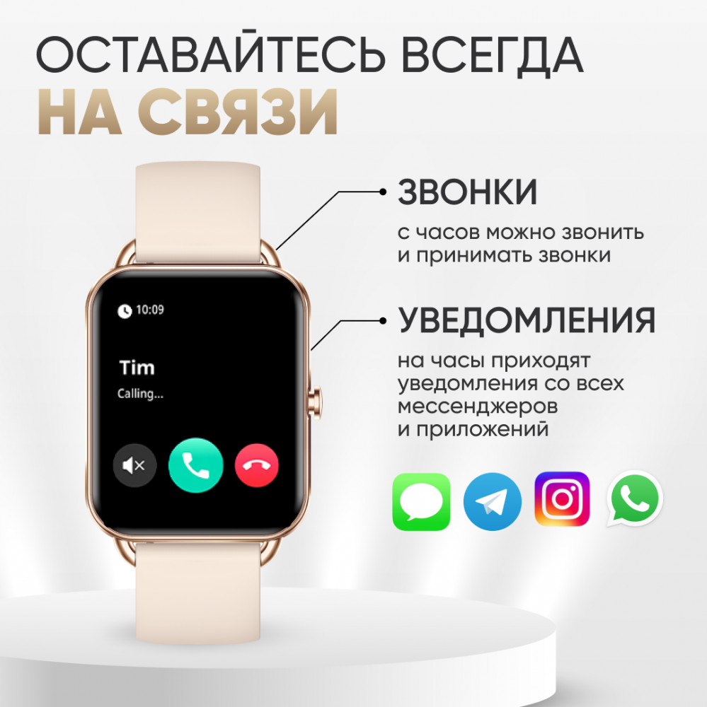 Смарт часы YAMI Mini — это инновационный гаджет, который объединяет в себе функции умных часов и фитнес браслета. Они станут незаменимым аксессуаром для владельцев устройств на базе Android (андроид) и iOS (iphone). Взаимодействие с телефоном происходит через специальное приложение DaFit посредством Bluetooth. Одной из ключевых особенностей этих смарт-часов является яркий безрамочный дисплей диагональю 32.5 мм, обеспечивающий насыщенные цвета и четкость изображения. Сенсорный экран также имеет прочное акриловое стекло, что делает его надежным и долговечным.