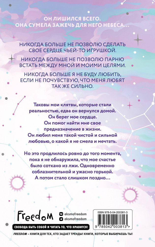 💳 Оплатить за товар можно при получении 🇰🇿 Есть бесплатная доставка по Казахстану от 1 дня 🎁 Копите бонусы с каждой покупки Серия: Freedom. Романтическая проза Эммы Скотт Подарочная дилогия «Влюбленные сердца» Эммы Скотт в потрясающем оформлении — две книги в футляре. В комплекте: «Дотянуться до звёзд» и «Зажечь небеса». Цветная фольга, лак, софт-тач. Иллюстрации на обложки созданы известной художницей Ace Dia. Иллюстрации внутри — художницей Diana Usmanova Art. |