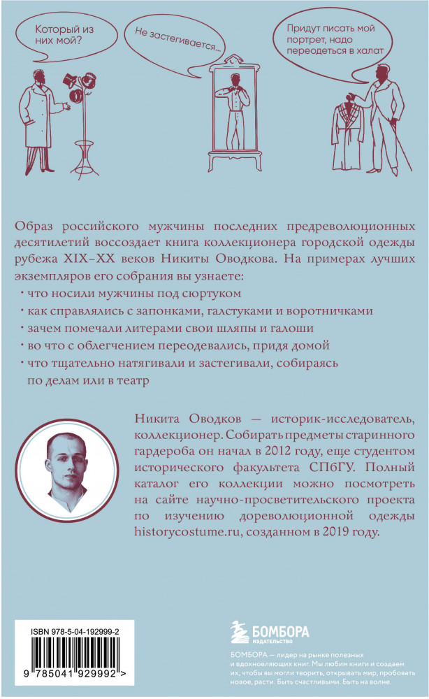 💳 Оплатить за товар можно при получении 🇰🇿 Есть бесплатная доставка по Казахстану от 1 дня 🎁 Копите бонусы с каждой покупки Серия: История моды в деталях Мужская одежда XXI века проста и комфортна, но порой при взгляде на утилитарно одетых людей вокруг тоскуешь по элегантным образам конца позапрошлого столетия. Коллекционер старинной одежды Никита Оводков на примере самых ценных предметов своего собрания детально воссоздает костюм городского жителя Российской империи предреволюционных десятилетий. |