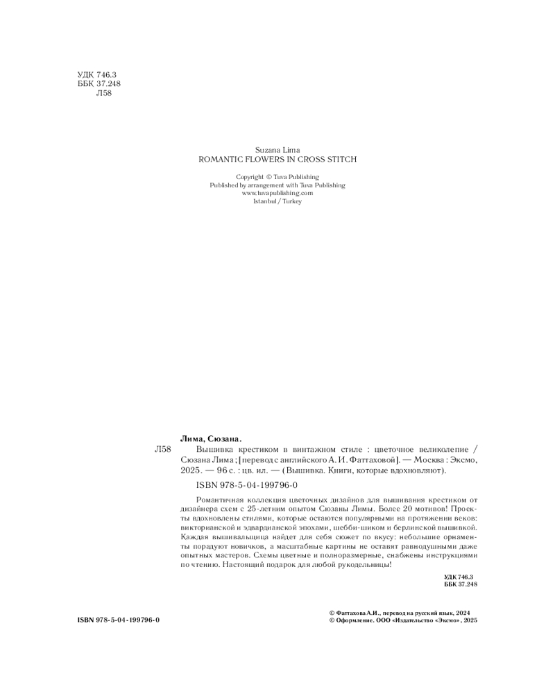 💳 Оплатить за товар можно при получении 🇰🇿 Есть бесплатная доставка по Казахстану от 1 дня 🎁 Копите бонусы с каждой покупки Серия: Вышивка. Книги, которые вдохновляют Нежные букеты расцветают под вашей рукой! В этой книге Сюзана Лима, вышивальщица и дизайнер схем с 25-летним опытом, представляет романтичную коллекцию цветочных дизайнов для вышивания крестиком. Проекты вдохновлены стилями, которые остаются популярными на протяжении веков: викторианской и эдвардианской эпохами, шебби-шиком и берлинской вышивкой. Великолепными цветами можно украшать постельное белье, абажуры, подушки, занавески, полотенца и многое другое. Каждая вышивальщица найдет для себя сюжет по вкусу: небольшие орнаменты порадуют новичков, а масштабные картины не оставят равнодушными даже опытных мастеров. Вышивать по этой книге приятно и увлекательно! Большой формат позволяет сделать схемы крупными и предельно понятными. Вышивайте с удовольствием! |