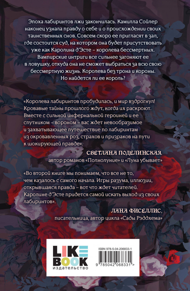 💳 Оплатить за товар можно при получении 🇰🇿 Есть бесплатная доставка по Казахстану от 1 дня 🎁 Копите бонусы с каждой покупки Серия: Young Adult. Короли лабиринтов Камилла Сойер, главная героиня романа «В лабиринтах правды», уже давно завоевала сердца читателей онлайн-платформ. Ее загадочность, хрупкость и в то же время храбрость откроют сердце для тайных лабиринтов нашей души, заново влюбят нас в вампиров и проведут по темной эстетике порока. 12 000 прочтений на Wattpad! Второе место по запросу «вампиры». Для любителей цикла «Желание» Трейси Вульф, «Дракулы» Брэма Стокера, сериала «Дневники вампира». |