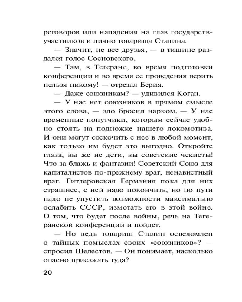 💳 Оплатить за товар можно при получении 🇰🇿 Есть бесплатная доставка по Казахстану от 1 дня 🎁 Копите бонусы с каждой покупки Серия: Тайная гвардия Берии (обложка) Осень 1943 года. В Тегеране готовится конференция глав государств-союзников. У советских спецслужб есть серьезные опасения, что немецкая агентура может сорвать высокую встречу. Группе майора Максима Шелестова поручено обеспечить безопасность нашей делегации. В Тегеране оперативники узнают, что незадолго до их прибытия в здание американского посольства проник неизвестный, после чего была взорвана машина начальника охраны дипмиссии США. Похоже, диверсанты готовы к самым смелым атакам. Шелестов разрабатывает ответный план, еще не догадываясь, какой необычный противник противостоит ему в этой схватке... |