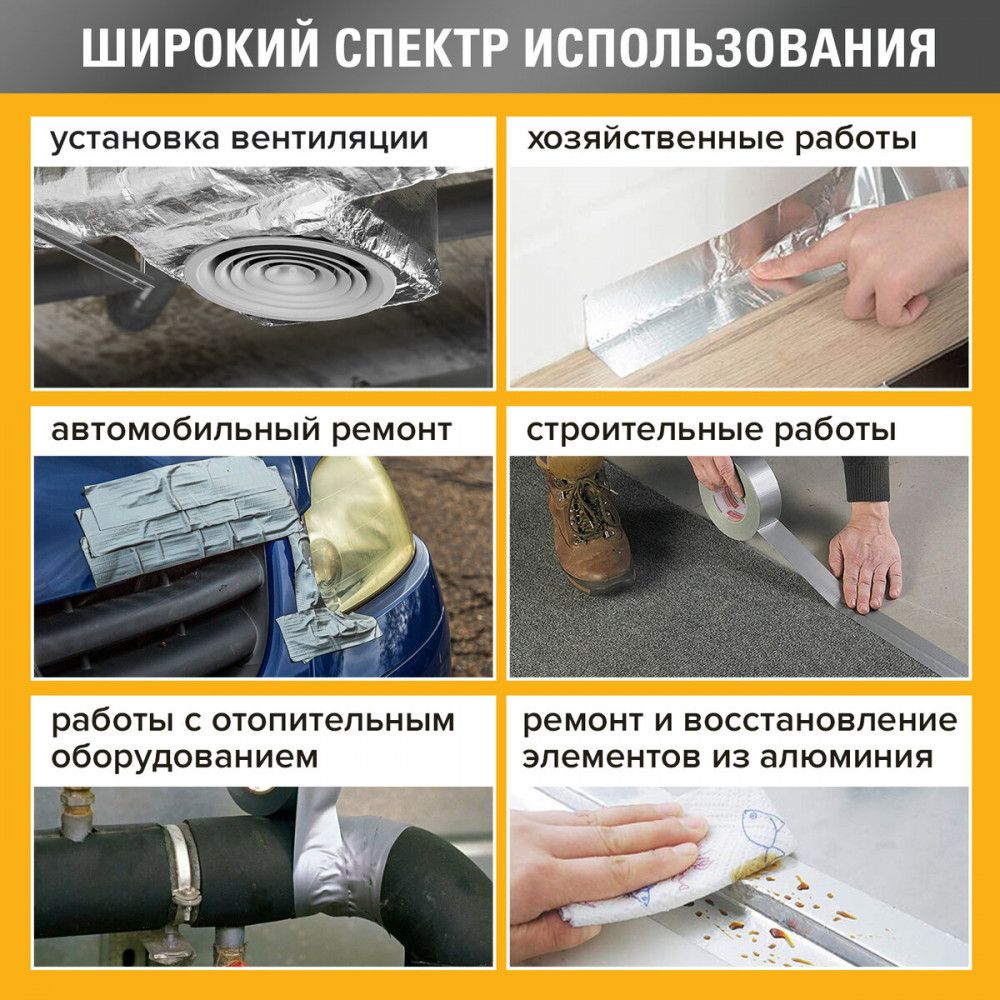 Металлизированная клейкая лента Brauberg применяется для различных типов строительных, ремонтных и монтажных работ. Используется для герметизации соединительных швов воздуховодов, труб, монтажа вентиляции и систем кондиционирования. |