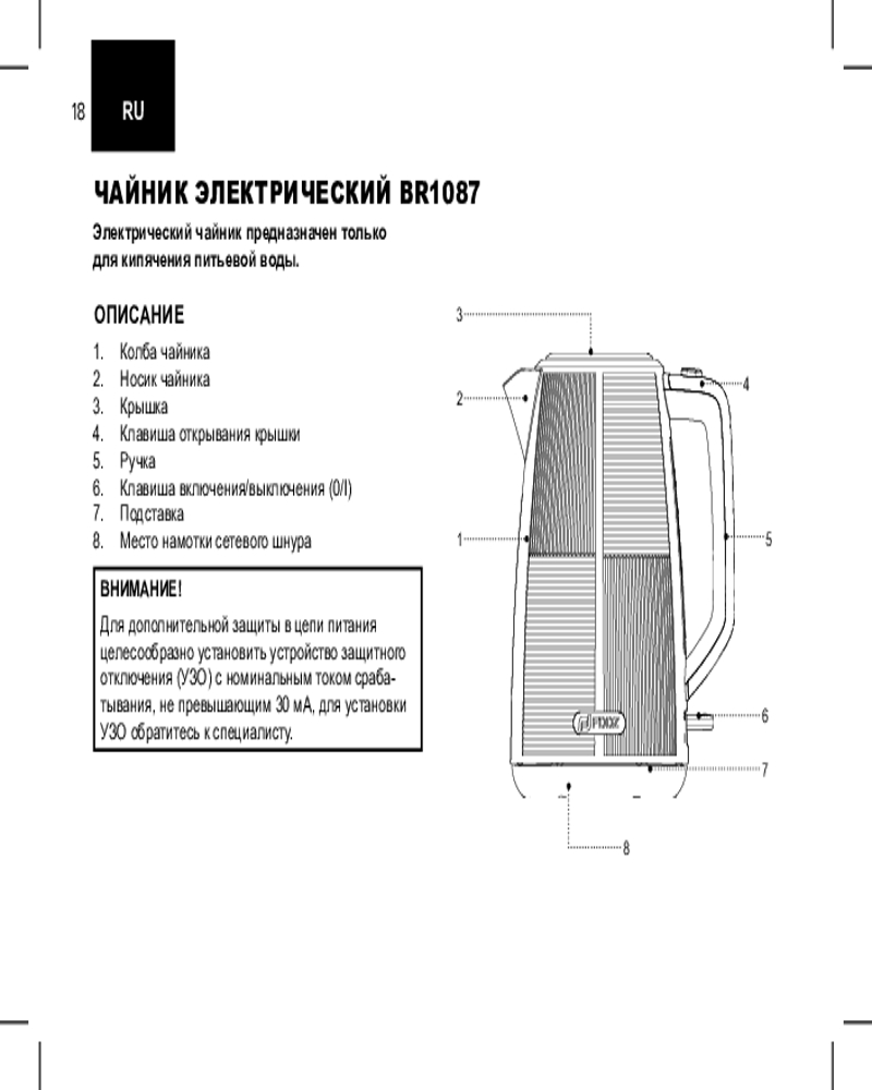 Отзывы «Чайник электрический BR1087»