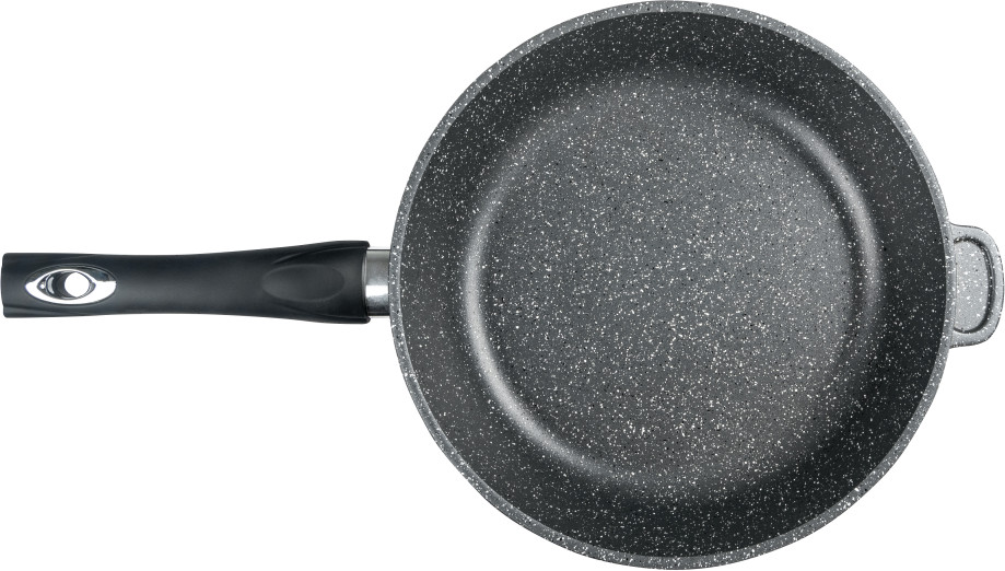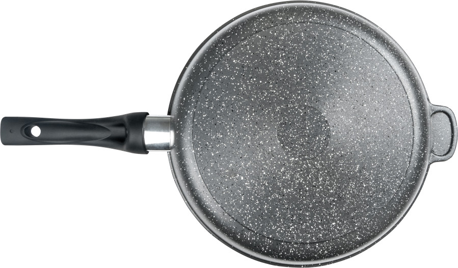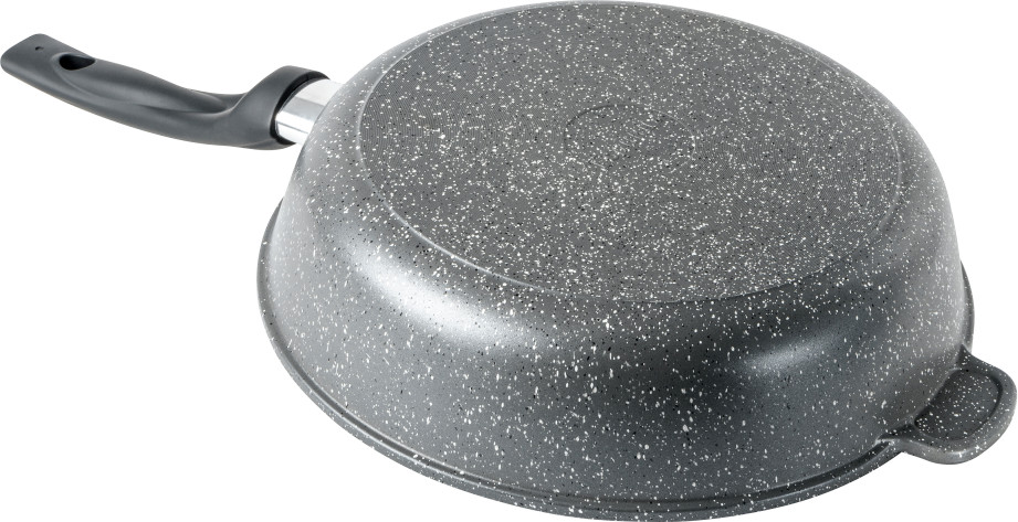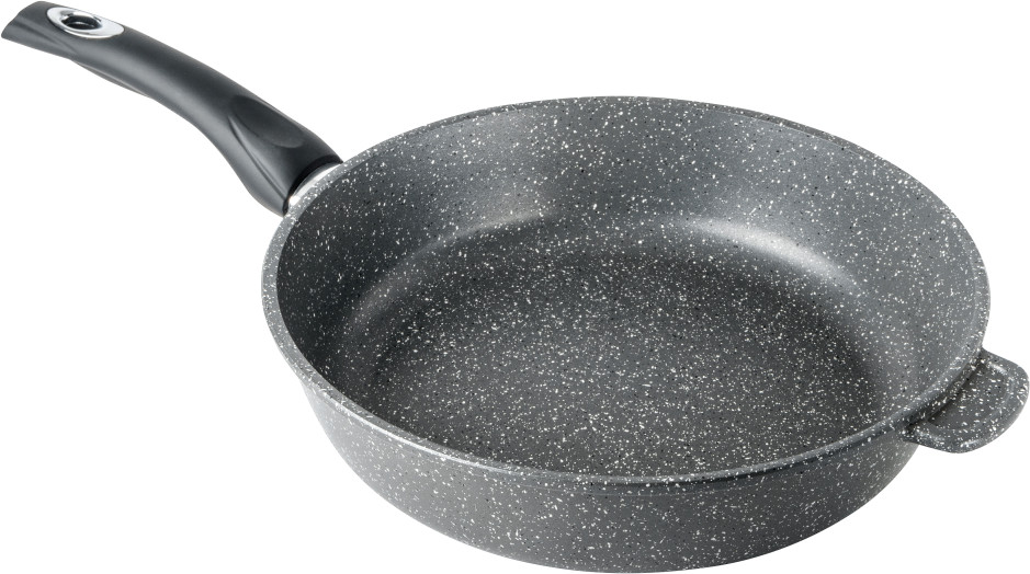 Литая алюминиевая сковорода с антипригарным покрытием — оригинальная посуда, которая подходит для газовых, электрических и стеклокерамических плит. Необходима для приготовления различных продуктов: мяса, овощей, грибов, рыбы и т.д. «Графит». Коллекция «мраморной посуды» с улучшенным четырёхслойным антипригарным покрытием. Дополнительный слой с мраморным эффектом увеличивает износостойкость и создаёт оттенок серого мрамора. Сковорода литая изготовлена из пищевого алюминия без канцерогенных веществ. Антипригарная сковорода имеет толстые стенки и утолщенное дно, что способствует равномерному распределению тепла и создает благоприятные условия для качественного процесса готовки. Антипригарное покрытие на водной основе не содержит вредных химических соединений. Посуда металлическая имеет гладкую поверхность, что облегчает мытьё. Ручка для сковороды из бакелита не нагревается и не выскальзывает из рук.
