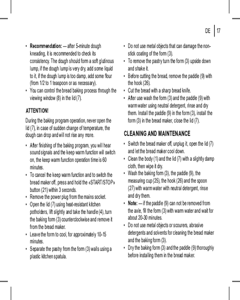 • форма для выпечки с антипригарным покрытием и лопастью для замеса теста;