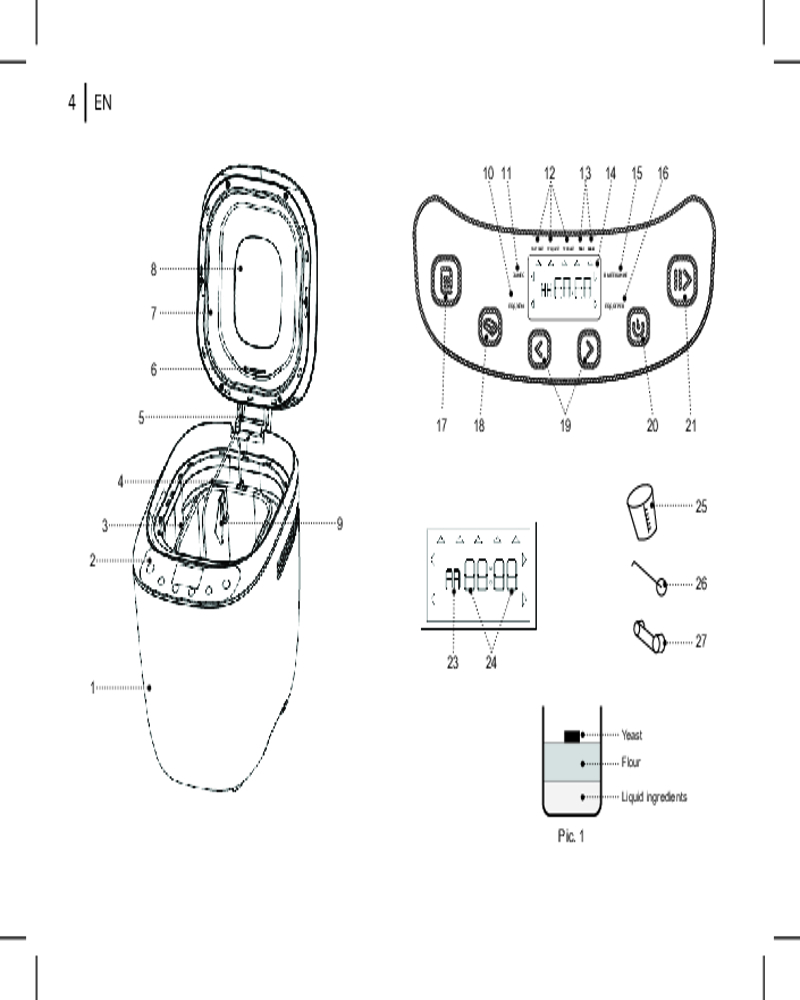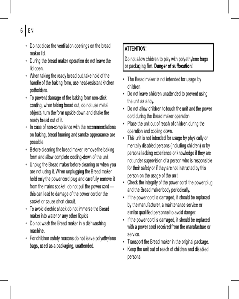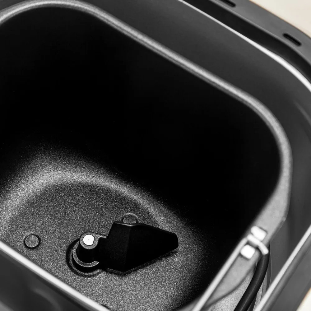 • антипригарное покрытие формы. Пластиковый корпус устройства обеспечивает лёгкость в использовании и уходе. Антипригарное покрытие формы для выпечки и лопасти для замеса теста делает процесс приготовления ещё более комфортным;