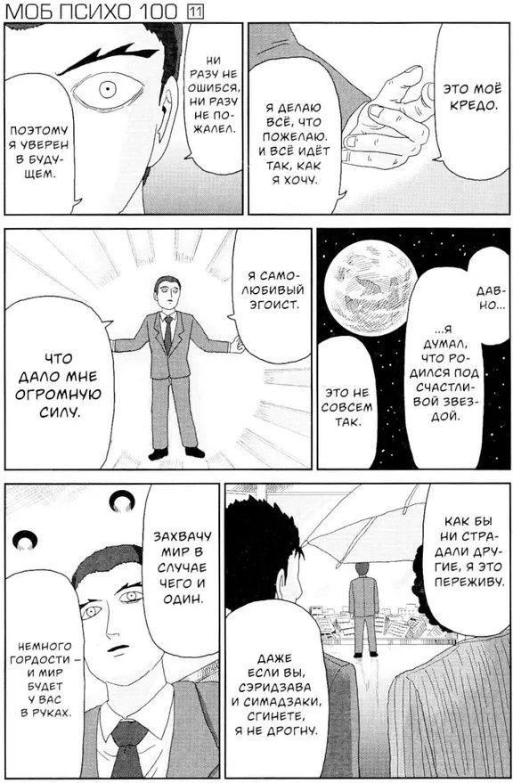 Первый том (книги 1-2) повествует о том, как медиумы-жулики, странные секты, да и вообще все подряд мечтают использовать Моба в своих целях, но чего хочет сам Моб? Во втором томе (книги 3-4) Моб в отключке после схватки с Тэру, серым кардиналом средней школы Чёрный Уксус. Неужели это конец? О нет, впереди нас ждёт нечто такое, что, возможно, не по плечу даже Мобу (который, кстати, не горит желанием использовать свои сверхсилы направо и налево). А тут ещё и обожаемый младший братец Рицу натворил дел и влип в историю. В третьем томе (книги 5-6) вместе с Тэру и Ямочки Моб пробирается в таинственную организацию «Коготь». Ученики средней школы (+ один очень злой дух) против взрослых! Да начнётся настоящая битва экстрасенсов! В четвертом томе (книги 7-8) в «Консультационном агентстве по призракам и тому подобному», где Моб работает экзорцистом на своего учителя Рэйгэна, шквал запросов. То развенчать городскую легенду о женщине с разорванным ртом, то изгнать демонов, которые буянят в школах и на фермерских полях, то охранять места силы и т. д. и т. п. В пятом томе (книги 9-10) Моб с товарищами вернулись к рутине после эпохального экзорцизма. Но лишь стоило Рэйгэну обронить резкое слово, как Моб оставил подработку. И вот Рэйгэна, ведущего дела уже без помощи Моба, зовут на ТВ! В заключительном томе комплекта (книги 11-12) злодейская организация экстрасенсов «Коготь» объявила о захвате мира и разрушает город Специй. Чтобы остановить их, Рэйгэн и остальные направляются к Башне культуры, где засел босс «Когтя». На пути наших героев поджидают сильные соперники... |