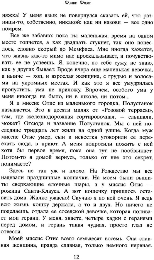Иджи всегда была сорванцом с обостренным чувством справедливости. Такой она и осталась, когда выросла и вместе с любимой подругой открыла кафе «Полустанок», в котором привечает всех, бедных и зажиточных, черных и белых, веселых и печальных. Истории, что происходят с Иджи и ее близкими, иногда до боли реалистичны, а порой они совершенно невероятны, но всегда затягивают, заставляя переживать так, будто все это происходит в реальной жизни. Ибо великий роман Фэнни Флэгг и есть сама жизнь.