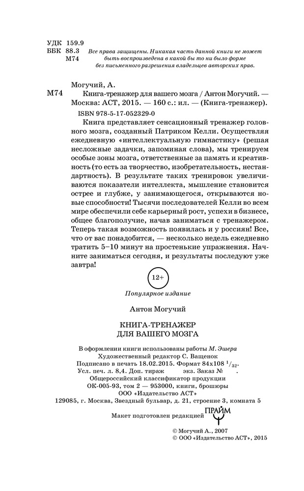 Книга-тренажер интересная, она должна быть у всех и у каждого. Начиная со школьников лет 8-9 и до 100 лет, это точно. Мозг необходимо тренировать, если не хотите к 40 годам стать маразматиком.