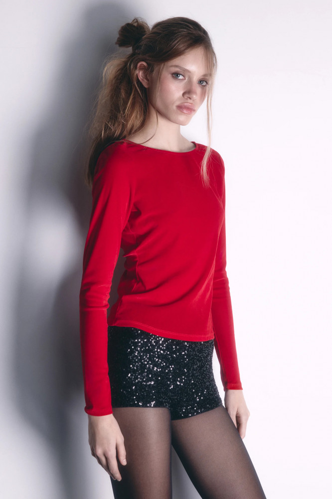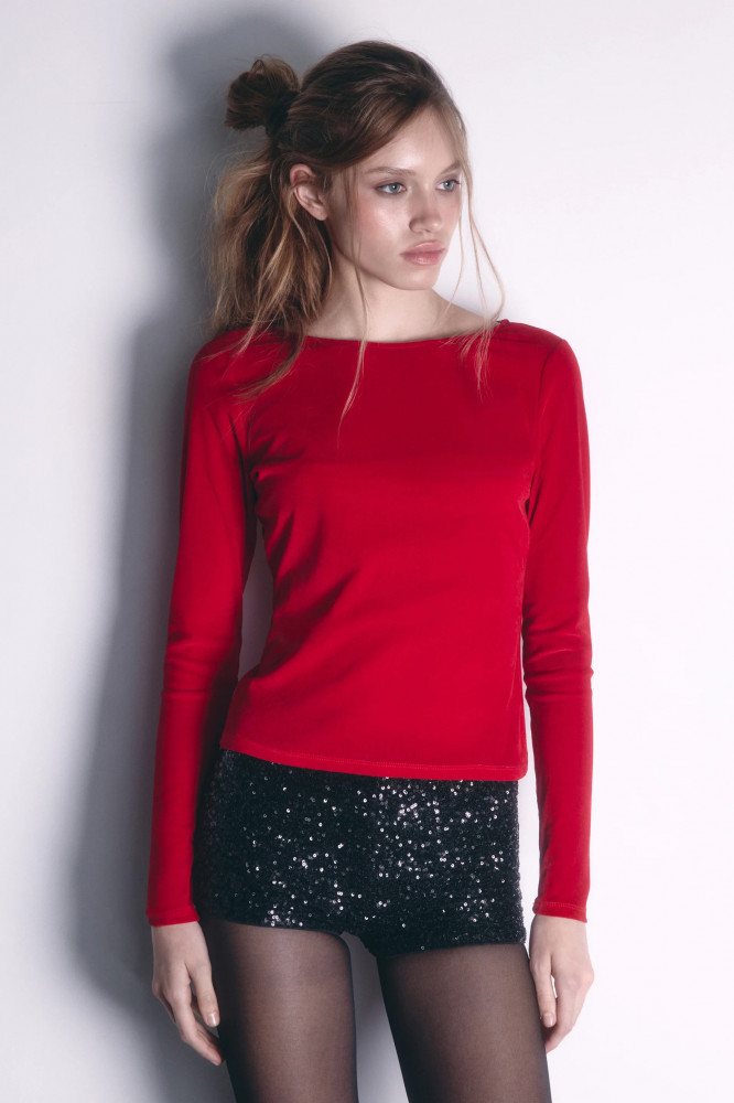 Женский лонгслив облегающего кроя из мягкой, эластичной и очень приятной к телу вискозной ткани с бархатной фактурой. Круглый вырез горловины без воротника, вырез на спине, регулируемый завязками. Длинные облегающие рукава с прямыми манжетами и прямой линией плеча. Прямой нижний край без разрезов. Бархатный лонгслив станет базой твоего гардероба. Сочетай однотонный лонгслив с бархатной юбкой или бархатными брюками со стразами из новогодней капсулы. После праздников блузка станет яркой деталью повседневных, офисных или университетских образов. Комбинируй ее с любимым низом и создавай луки в разных образах на каждый день. С лонгсливом у тебя получится соблазнительный и строгий образ «офисной сирены». Заверши аутфит удобной обувью и стильными аксессуарами из новой коллекции Befree.