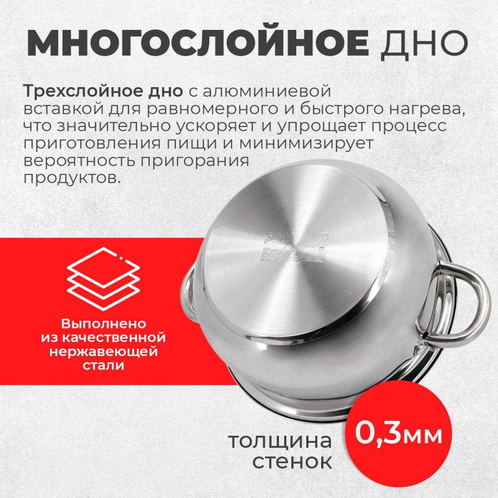 Pomi d’Oro Кастрюля из нержавеющей стали с крышкой «Laura»