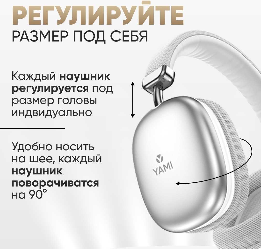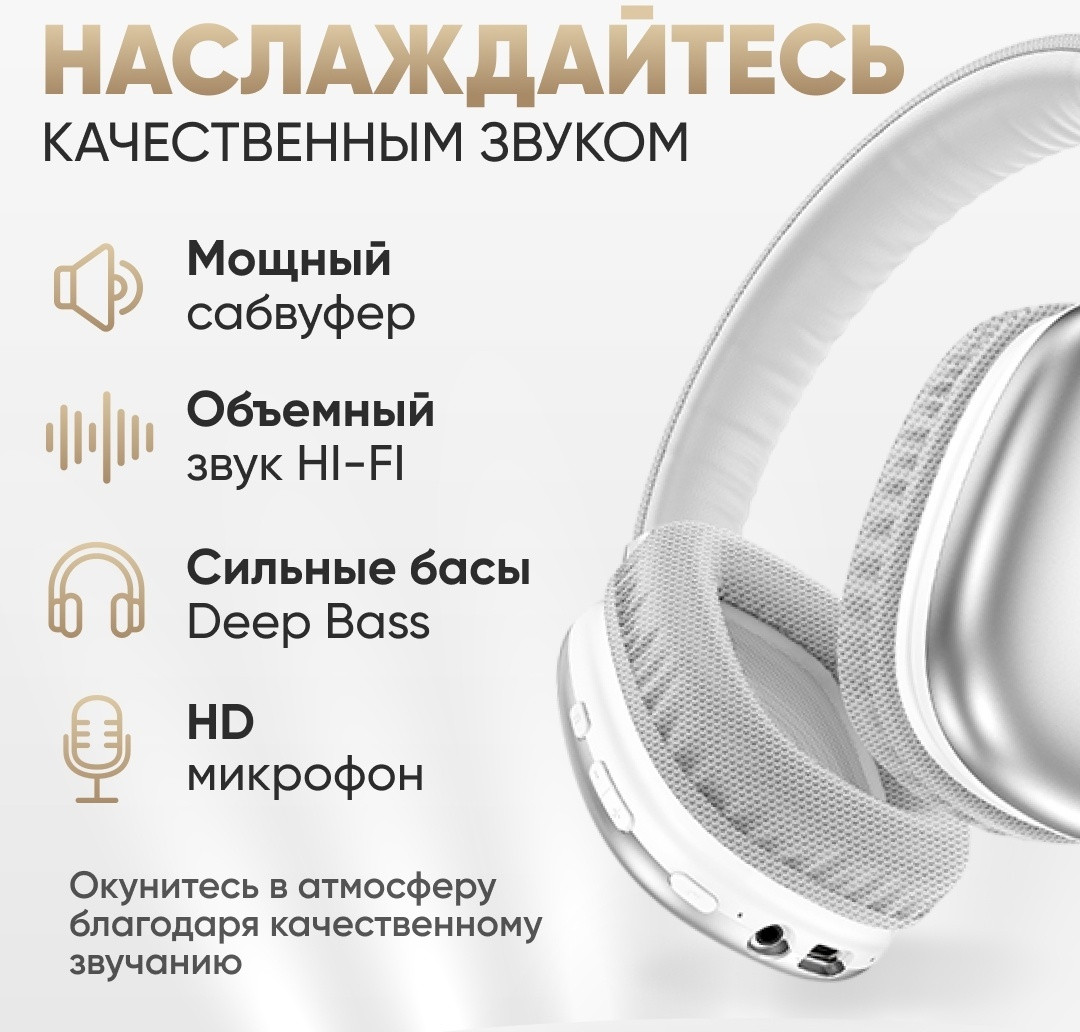 Нayшники совместимы с любыми устройствами: планшеты, смартфоны андроид Android или iPhone (iOS), ПК. Качество звука при подключении через Bluetooth не меняется даже при отдалении от телефона на расстояние 10-15 метров. Нayшники собраны из приятных на ощупь материалов: надежный пластик и качественная искусственная кожа. Удобные амбушюры не вызывают дискомфорта даже при длительном использовании нayшников. Вы можете отрегулировать каждый нayшник по длине и углу поворота, так чтобы они идеально подходили под размер вашей головы.
