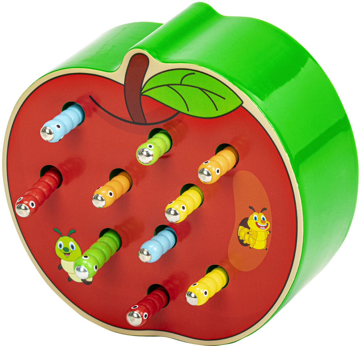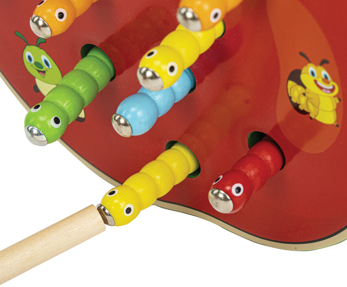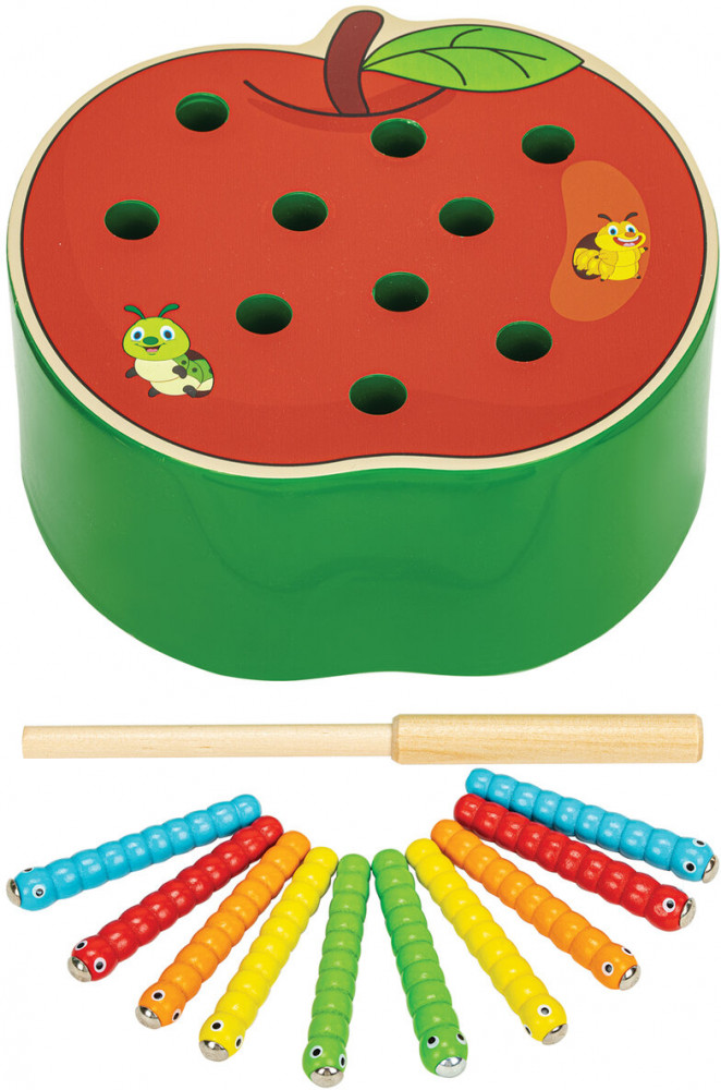 Уникальная развивающая и обучающая игрушка магнитная рыбалка Brauberg Kids поможет малышу развить координацию движений, логику и мышление. Яркое яблочко обязательно привлечет внимание ребенка и займет его надолго. Игра заключается в том, чтобы магнитной палочкой доставать червячков из основы. После этого малыш может рассортировать их обратно по лункам, развивая при этом аккуратность и навык вложения. С помощью гусениц ребенок будет изучать основные цвета и счет до десяти.