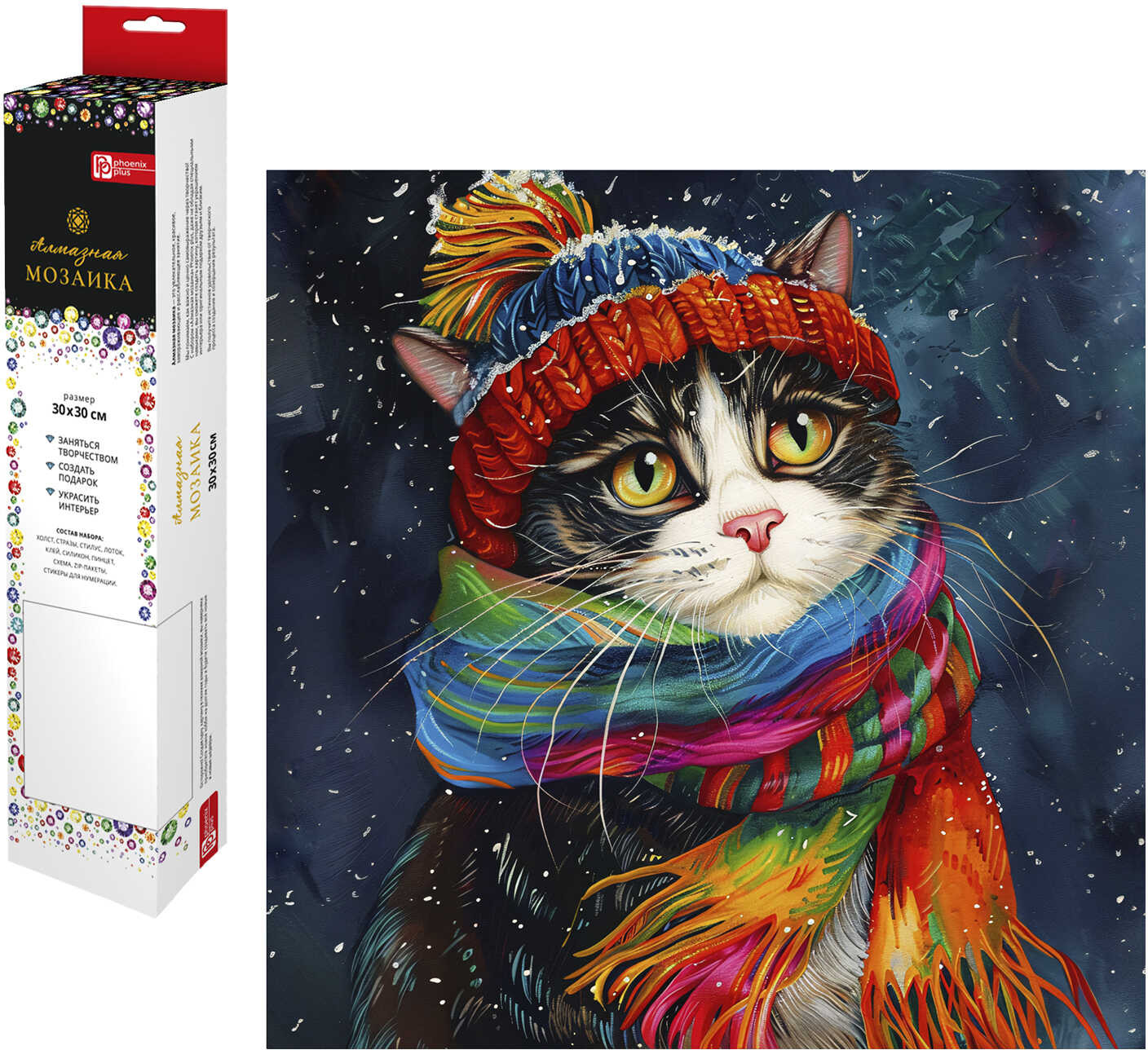 Феникс + Мозаика алмазная «Зимний кот»-25% +91