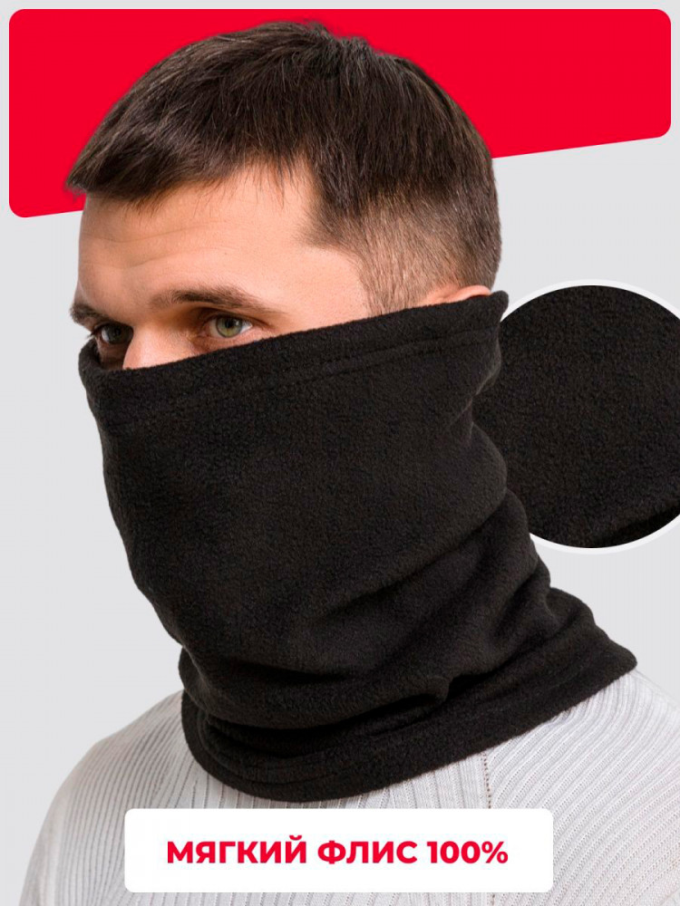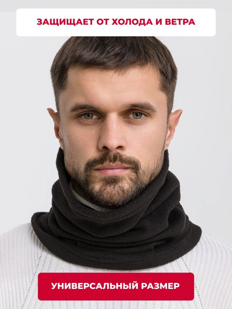 Мужской снуд-бафф из двухслойного флиса — это практичный и универсальный аксессуар для защиты в холодное время года. Благодаря плотному и мягкому материалу он эффективно закрывает лицо, уши и шею, обеспечивая надежную защиту от ветра и мороза.